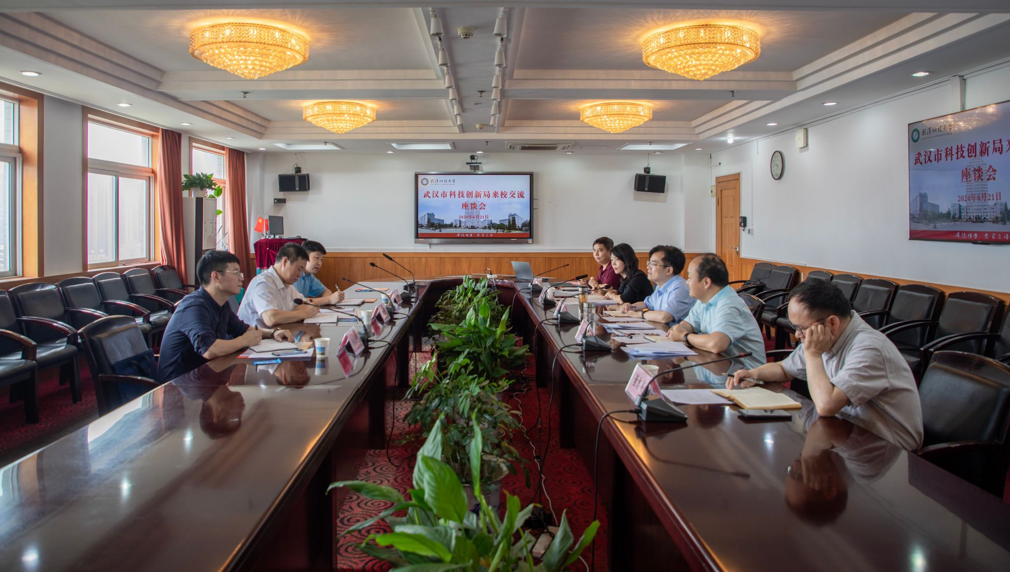 武科大网讯(记者陈孖川)6月21日,武汉市科技创新局副局长徐涛等一行来校座谈交流,副校长吕勇出席座谈会。