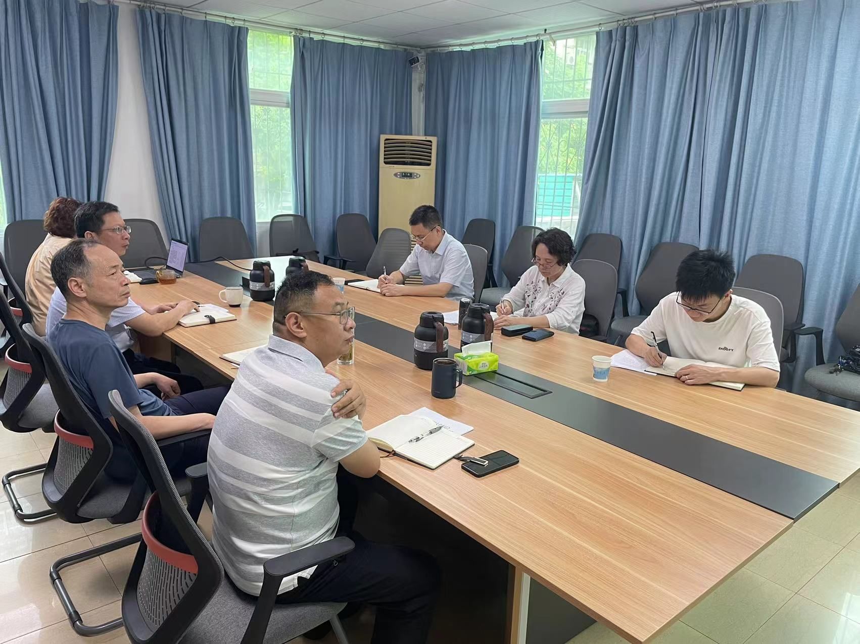 会上,肖珊向窦先萍汇报了零星维修工程的管理情况及工作亮点、日常保障性维修的工作难点、能源管理取得的成效等,黎伟对汇报工作进行补充。