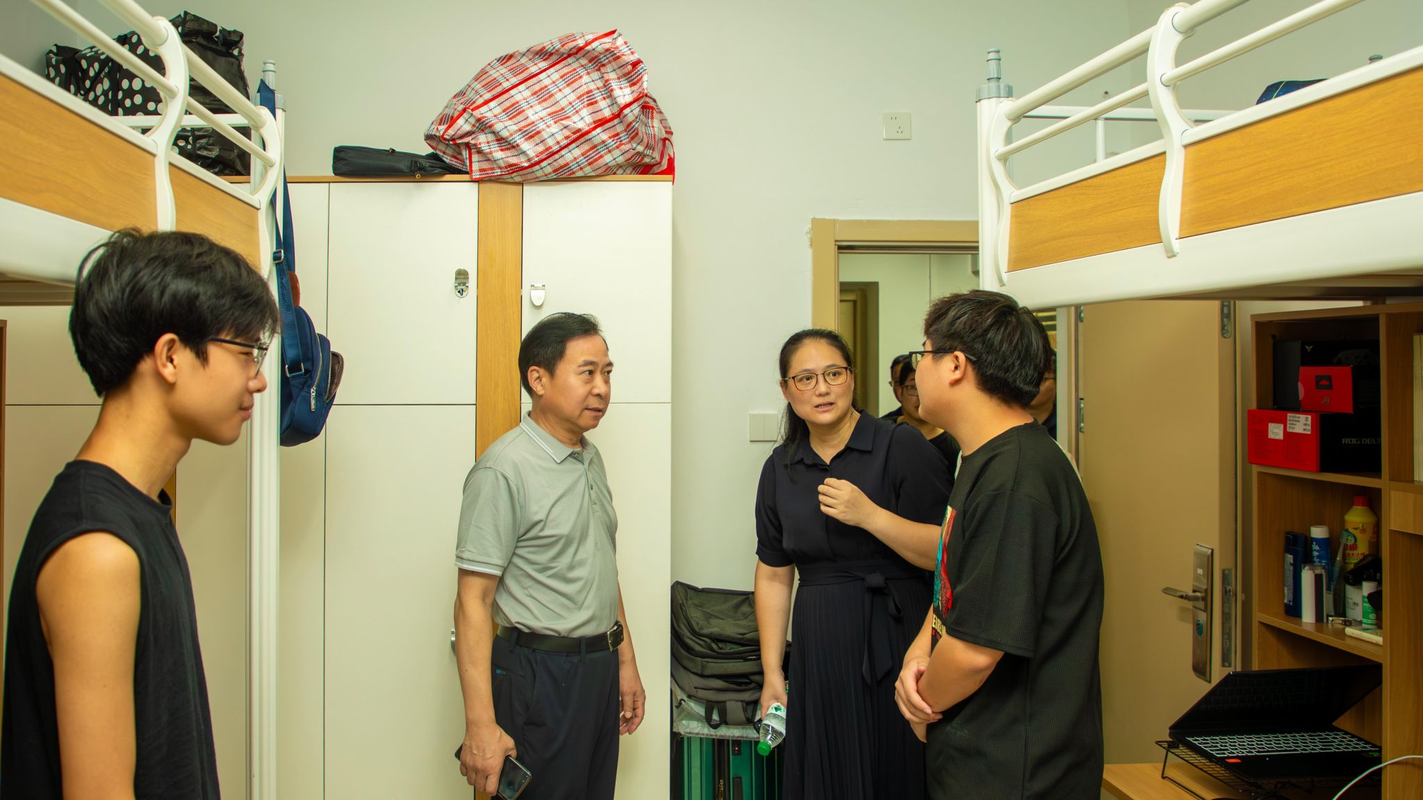 今年暑假,青山校区学二、学八、学九舍维修改造,提档升级。孙国胜表示,学校以学生为中心,学二、学八、学九舍维修改造是学校今年重点民生工程,希望同学们在新宿舍中能生活得更加舒适,同时也希望同学们能积极反馈使用中的任何问题,以便学校进一步优化住宿环境,为同学们创造更加温馨的学习与生活空间。