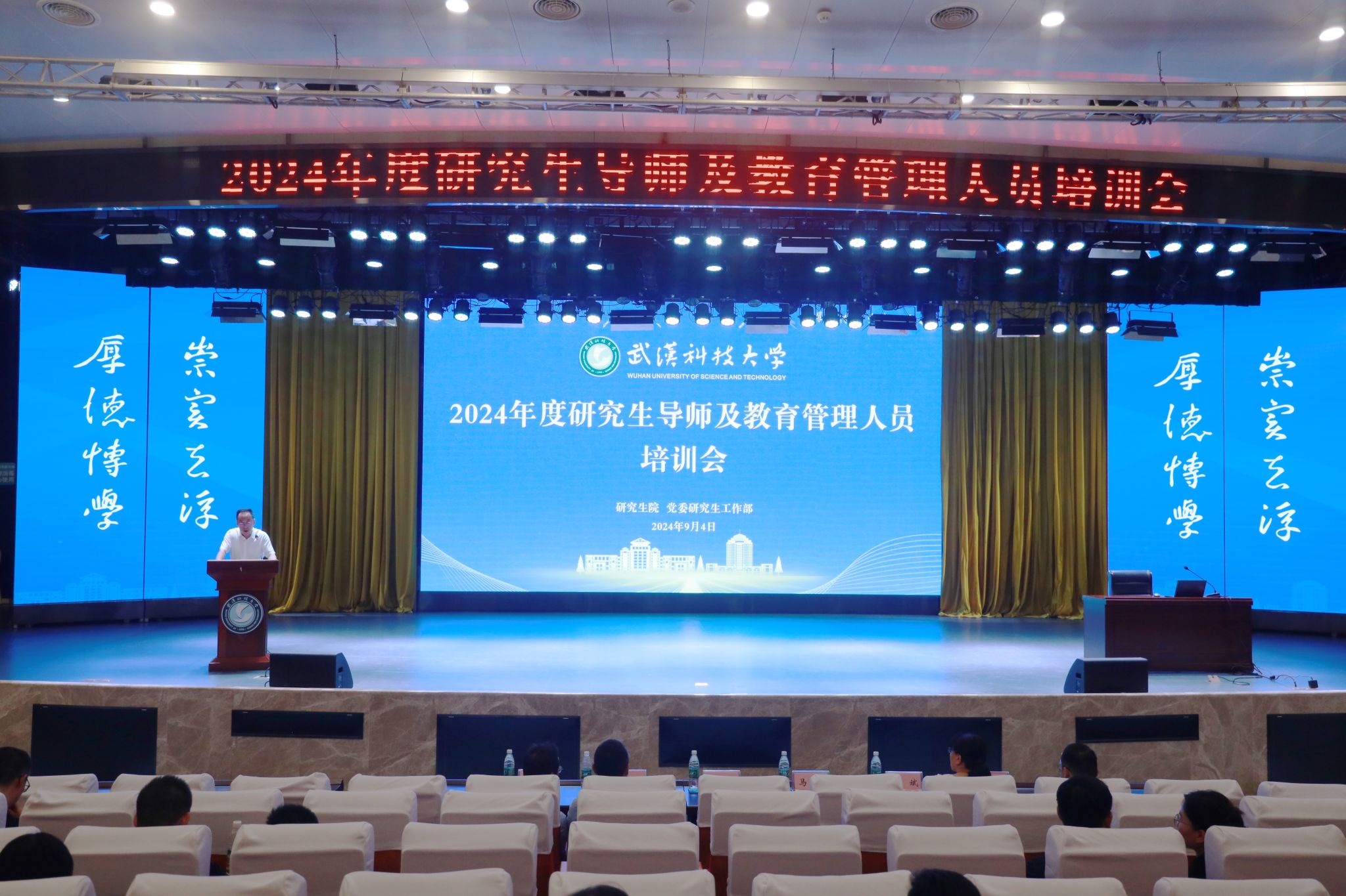武科大网讯(通讯员金伟 朱磊)9月4日下午,学校在青山校区碧园会堂召开2024年度研究生导师及教育管理人员培训会。党委常委、副校长马腾出席培训会,研究生院全体人员,各培养单位新晋导师、分管研究生工作副院长、党委副书记、研究生秘书、辅导员等参加了培训会。会议由研究生院院长程常桂主持。