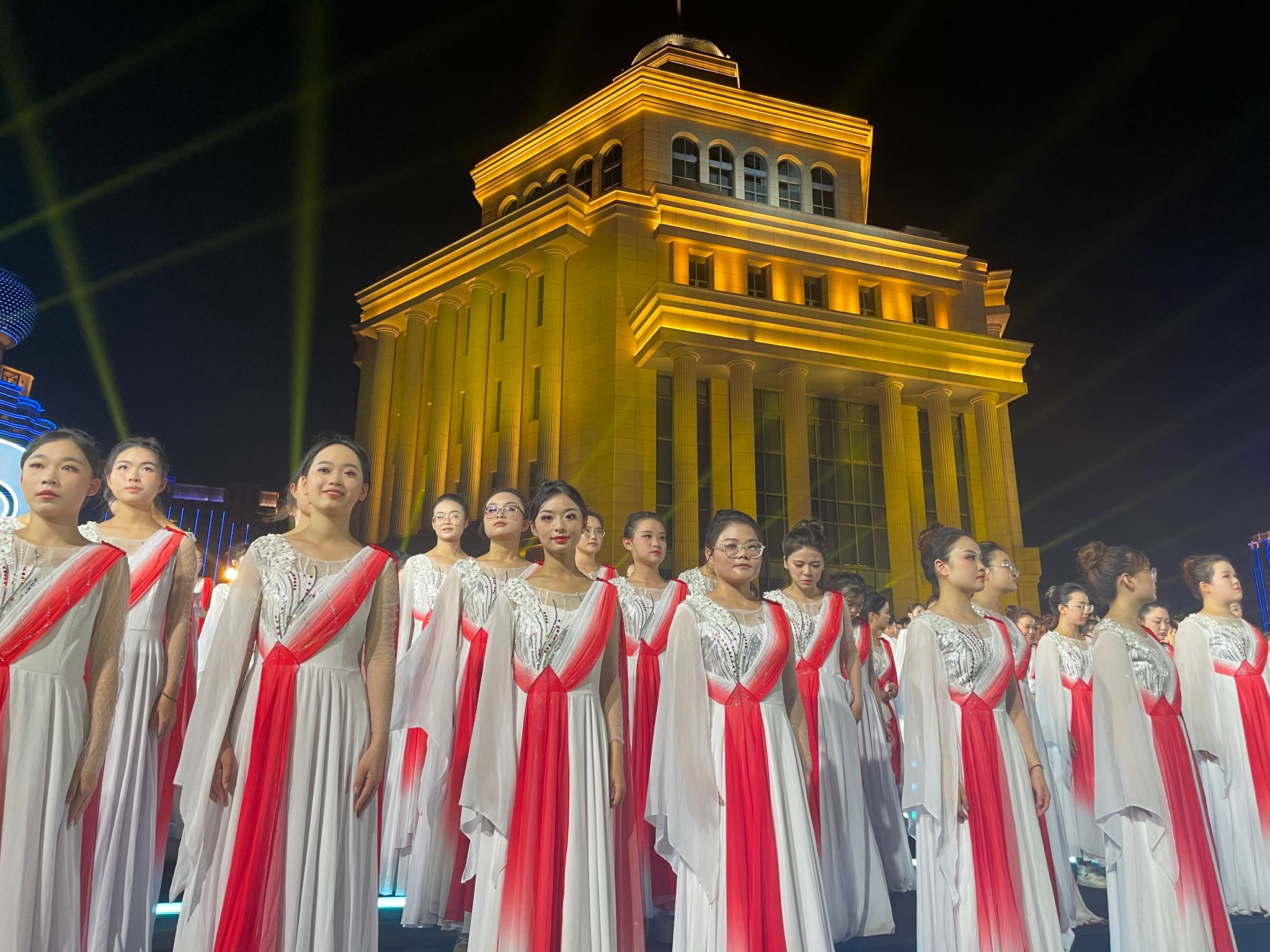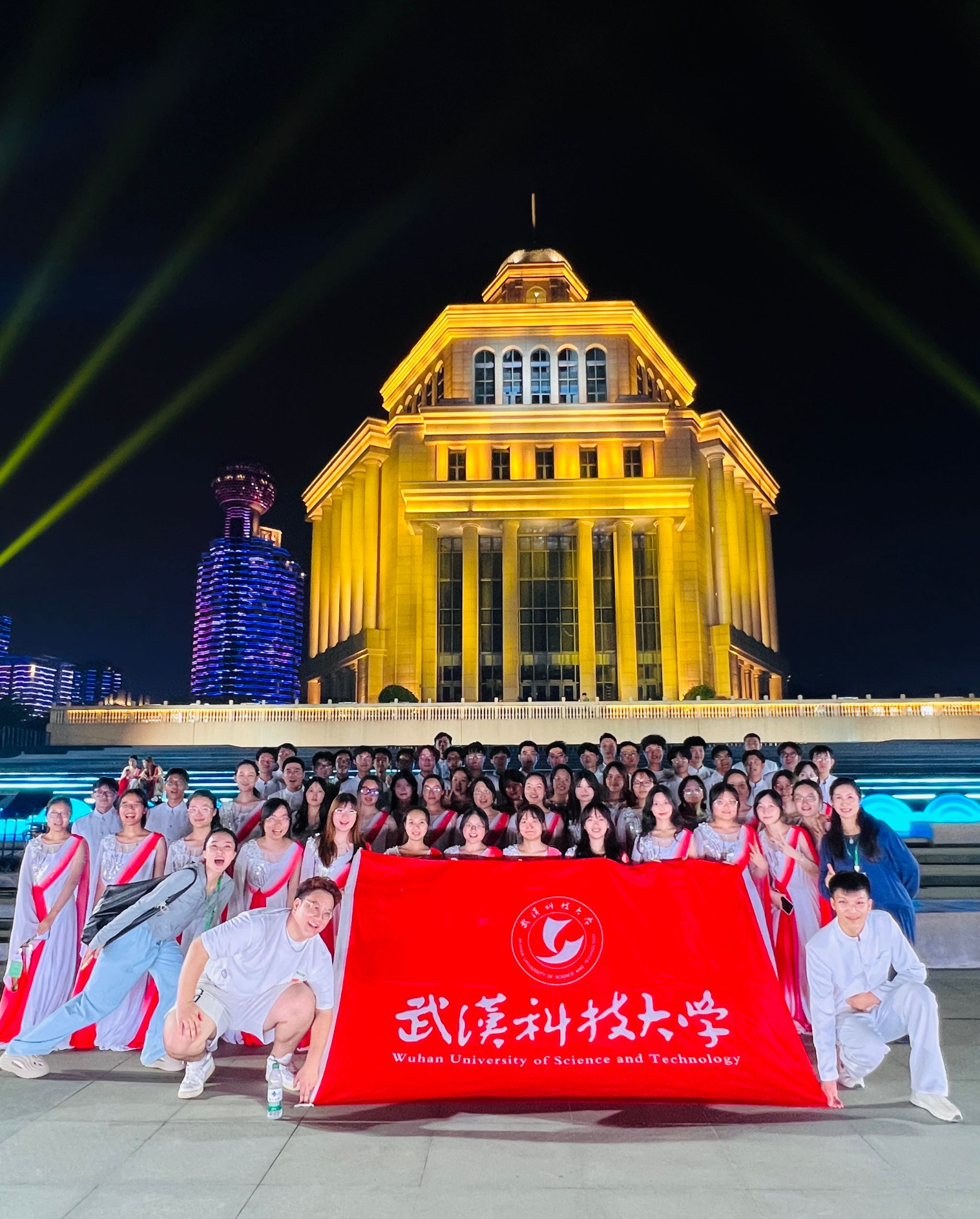 武科大网讯 9月14日晚,首届长江艺术文化季在武汉隆重开幕,365完美沁湖之声合唱团六十名团员和全省十二所高校的学子共同完成了开幕式中《长江之歌》的千人合唱表演。本次演出由校美育中心副主任姜瑾带队指导。