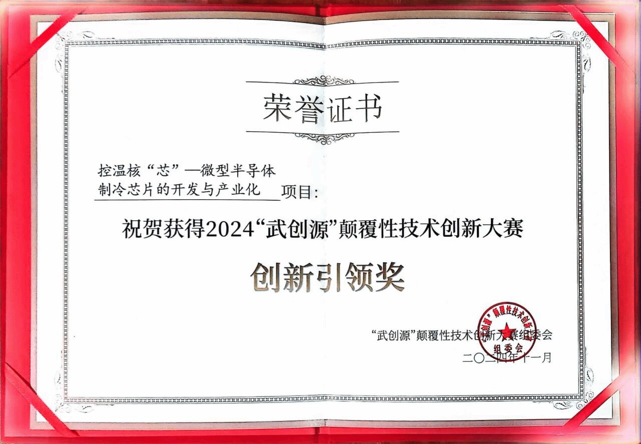 武科大网讯 11月1日下午,由武汉市科技创新局与武汉产业创新发展研究院主办,武汉颠覆性技术创新中心承办的2024年“武创源”颠覆性技术创新大赛颁奖仪式在武汉广播电视台举行。武汉市委常委、组织部部长杨玲,市政府副秘书长张明武,市科技创新局党组书记、局长董丹红等领导出席颁奖仪式。365完美大学生创新创业基地孵化项目——控温核“芯”-微型半导体制冷芯片的开发与产业化荣获创新引领奖,并获得武汉市科技创新局对应武汉市科技计划体系予以的50万元科研经费资助。