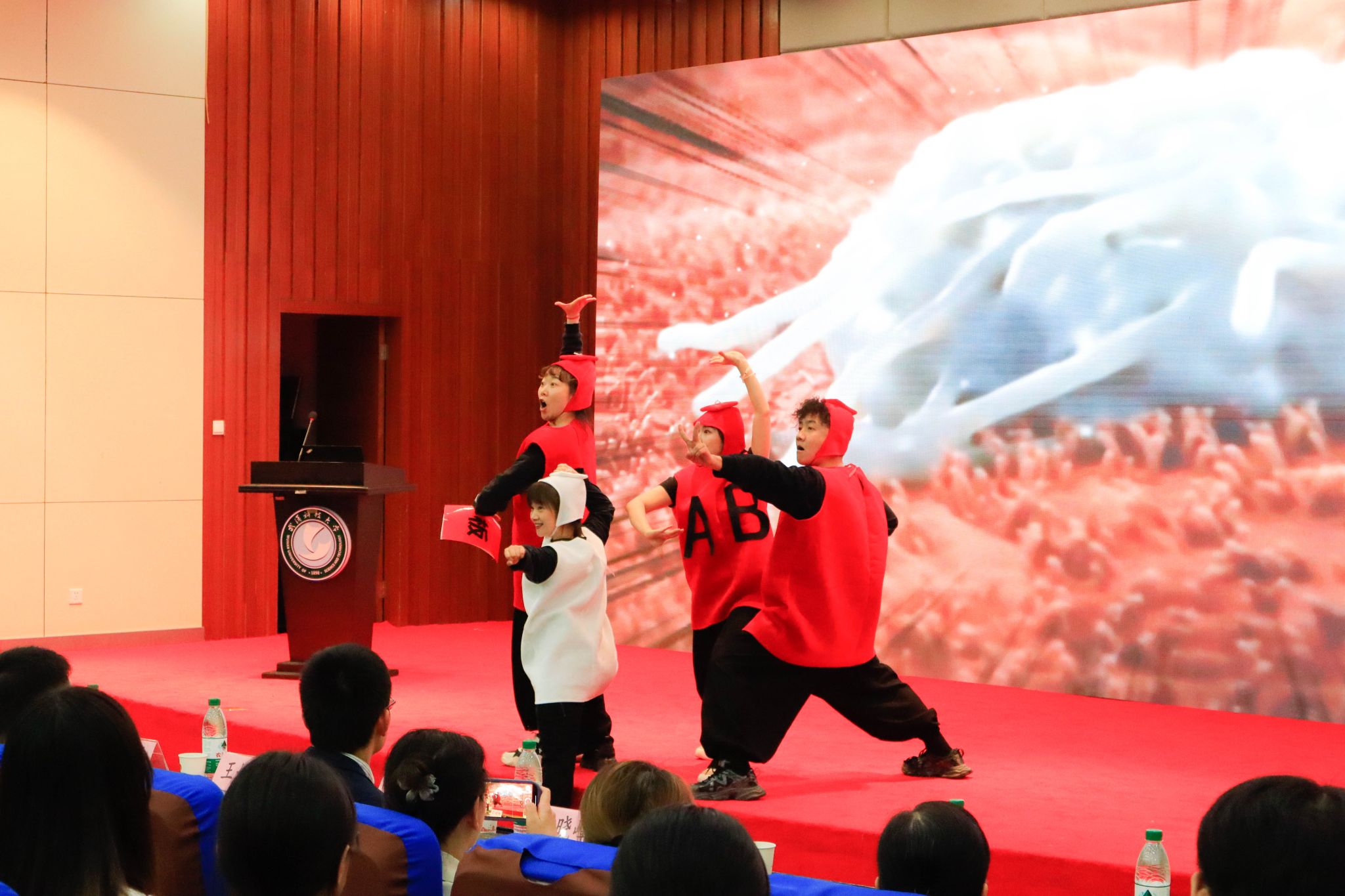 舞台剧《血型宝宝》中,会说话的血型宝宝手挽着手,直观展现了输血的全过程;舞台剧《让我留在你身边》讲述了主角周全一家备孕献血、奉献社会的故事;台下观众掌声雷动,纷纷拿出手机记录。杜思颖科普宣讲了《输血冷知识》和《血液的秘密》,他表示O型血是“危险的万能血”,若大量注射到其他血型患者体内,会破坏患者红细胞出现溶血。
