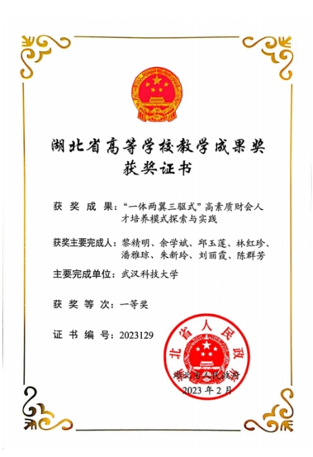 2020年,工程管理专业通过国际工程教育认证;2021年,信息管理与信息系统、工商管理和市场营销3个专业获批国家一流专业建设点。2020-2023年期间,学院成功获批省级教学研究项目6项,校级教学项目26项(其中,校级重点项目3项、校级一般项目18项、校级课程思政专项4项、微专业人才培养专项改革与实践专项1项);出版《供应链管理》《网络广告学》《证券投资学》等高质量专业核心课程教材14部;开发的案例入选中国管理案例共享中心21篇。2023年,学院获国家级教学成果二等奖1项,获湖北省高等学校省级教学成果一等奖1项、二等奖3项。
