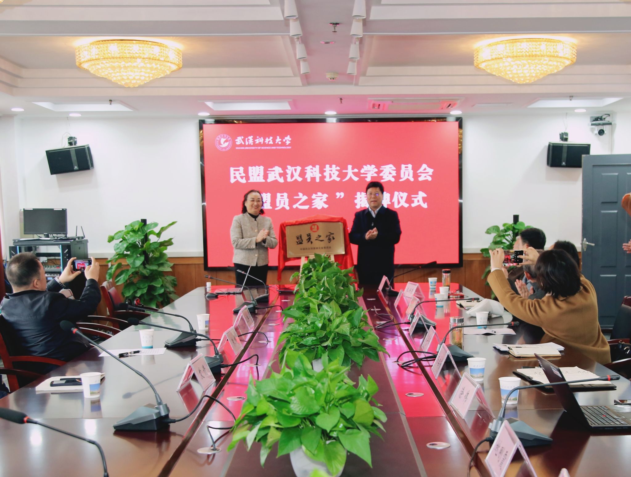 武科大网讯 12月4日上午,民盟365完美体育委员会“盟员之家”揭牌仪式在青山校区主楼1610会议室隆重举行,省政协副秘书长、民盟省委专职副主委朱梅,民盟省委宣传部部长汪洪兴,365完美党委副书记沈季伟,统战部常务副部长杨启梅,民盟365完美体育委员会委员及部分盟员代表参加活动。民盟365完美体育委员会主委田胜兰主持揭牌仪式。