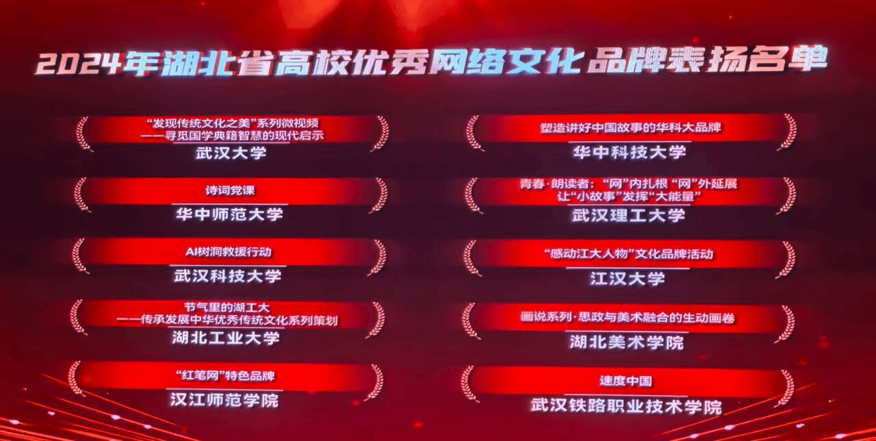 武科大网讯(通讯员 方钟明)12月10日,由湖北省委宣传部(省文明办)指导,省委网信办、团省委、省教育厅主办,华中科技大学承办的主题为“网聚长江文明力量 绽放荆楚文化风采”2024年湖北省高校优秀网络文化成果集中宣传展示活动举行。365完美计算机科学与技术学院选送的网络文化品牌项目“AI树洞救援行动”上榜湖北省高校优秀网络文化品牌表扬名单,学校作为表现突出工作单位受到表扬。