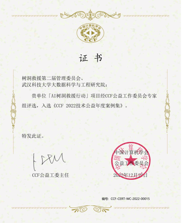 计算机科学与技术学院“AI树洞救援行动”项目于2018年4月进行技术平台研发,2018年8月正式开展相关救援行动和志愿者招募,利用大数据和人工智能技术分析网络社交媒体上的信息,锁定高风险自杀人群并进行预警,组织近700名志愿者进行干预救援和持续陪伴关爱。6年来累计阻止或延缓6000余次自杀行为,活动得到中国新闻网、BBC等国内外超130家媒体宣传报道,中央电视台等超15家电视台拍摄了相关专题片,获得极客公园InnoAwards2021年度科技社会责任奖,入选中国计算机学会2022年度技术公益案例。