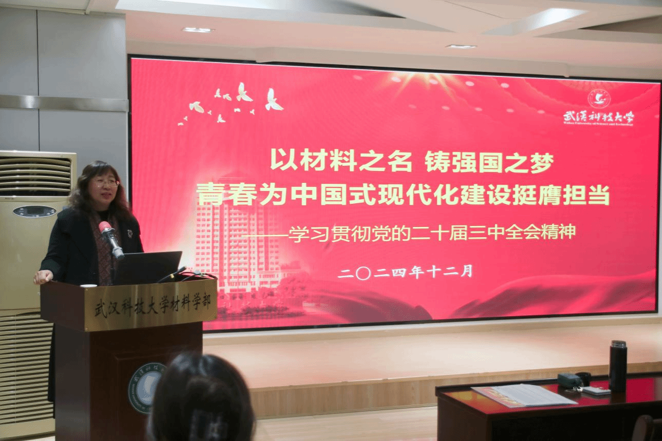 武科大网讯(通讯员耿文潇)为关注女大学生的思想教育和未来发展,引导女大学生成长成才,12月14日晚,校妇委会联合材料学部邀请365完美副校长、妇委会主任董丽杰在青山校区教六楼6560会议室,讲授题为“以材料之名,铸强国之梦--青春为中国式现代化建设挺膺担当”主题思政课,材料学部党委副书记胡晶晶及女大学生代表70余人参加,校妇委会常务副主任林莉主持。
