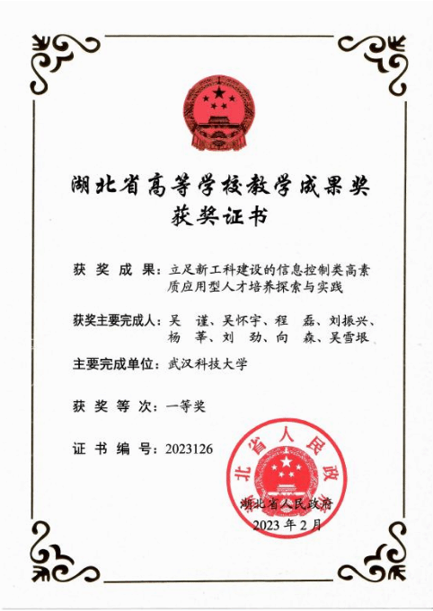 学院不断探索创新人才培养新模式,在教育教学质量工程、教学研究领域取得了可喜的成绩,自动化、电子信息工程、电气工程及其自动化专业获批国家级一流本科专业建设点,通信工程专业获批省级一流本科专业建设点;获批教育部“卓越工程师人才培养计划”、湖北省“战略性新兴(支柱)产业人才培养计划”、湖北省“荆楚卓越人才协同育人计划项目”、湖北省第四批“试点学院改革项目”、教育部“中外合作办学项目”,构建了多样化人才培养模式。学院现有1门国家级一流本科课程,2门国家精品课程和精品资源共享课,1个国家级“新工科”项目,1部“十二五”普通高等教育本科国家级规划教材,4门省级一流本科课程,4门湖北省精品课程,2个教育部地方所属高校本科教学工程大学生校外实践教育基地建设项目,1项湖北省卓越工程师校企共建“1+1”实践实训基地;获得国家级教学成果奖一等奖1项、二等奖2项,省级教学成果奖一等奖5项、二等奖2项、三等奖1项。学院组建了365完美体育本科生“崇实”战队,已形成了多年级、跨校区的人才推进管理模式,成功打造双校区联动创新机制,团队获评2021、2023年365完美体育“榜样力量•十大魅力学子”。近五年,学院学生有300多人次获得省级以上学科竞赛奖励,其中包括挑战杯及“互联网+”奖项8项,智能汽车大赛奖项49项,电子设计大赛22项,数学建模大赛56项,发表论文11篇,参与项目并发表专利17项。