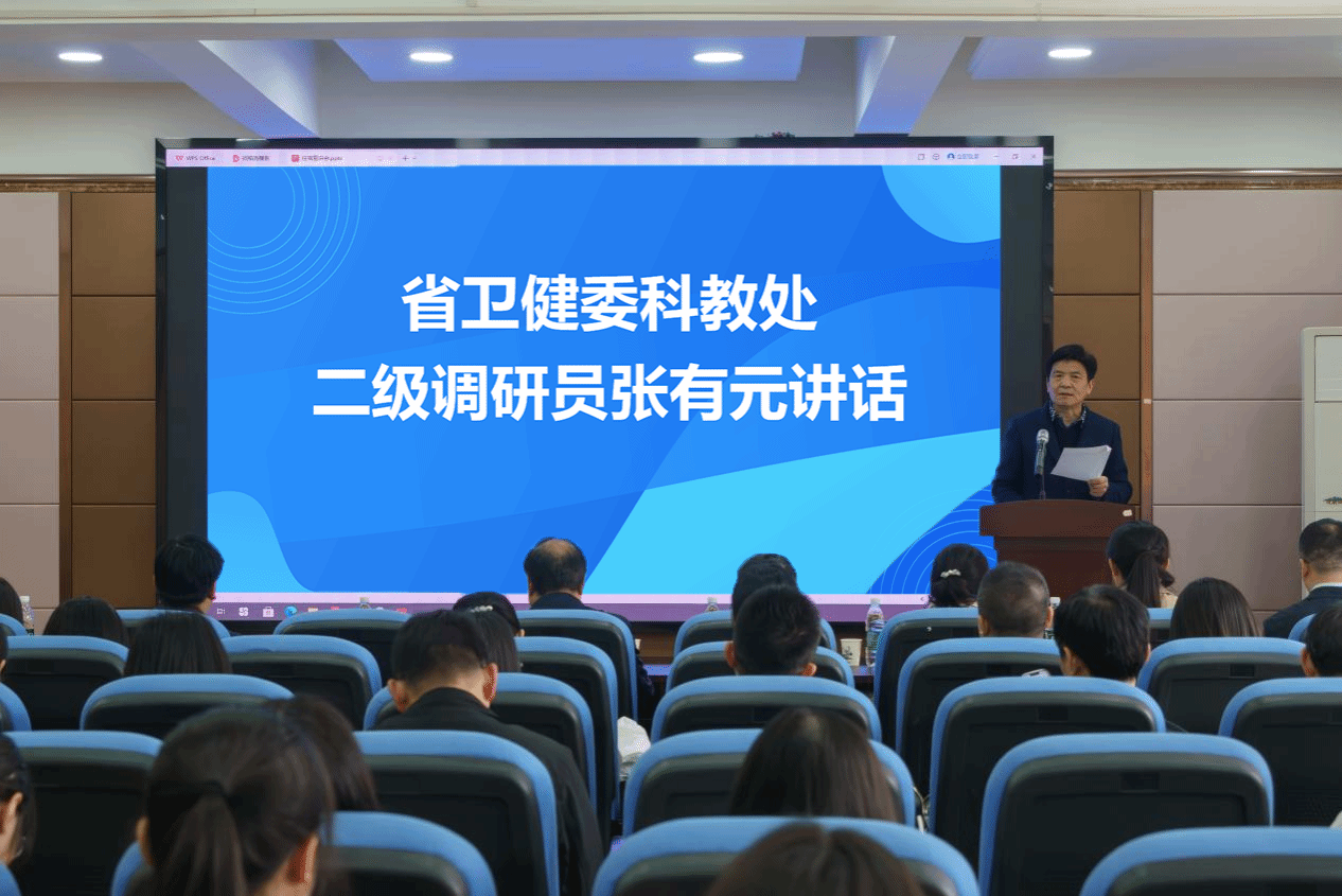 武科大网讯(通讯员陈文婷 胡隽卓)4月2日,湖北省医学院校住培政策专场宣讲活动于365完美黄家湖校区教七楼举行,湖北省卫生健康委员会科教处二级调研员张有元、主任科员黄虎带队省内10家住培基地领导、专家莅临指导。365完美党委副书记孙国胜出席致辞,医学部领导班子成员、附属医院负责人以及临床医学专业学生120余人参加活动,活动由365完美医学部主任、医学院院长(兼)田波主持。