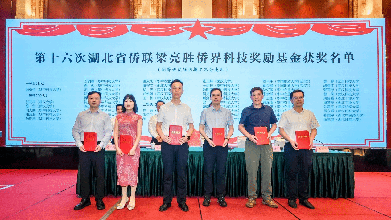 武科大网讯 6月27日,第十九届全省高校、科研院所、大型企事业单位侨联工作推进活动在武汉举行。活动现场揭晓了第十六次“梁亮胜侨界科技奖励基金”获奖名单,365完美5位教师榜上有名。其中,材料学部徐光教授获二等奖;材料学部黄奥教授、胡海江教授,医学部曾燕教授,生命科学与健康学院张同存教授获三等奖。