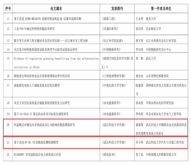 武科大网讯 近日,2024年度湖北省科技期刊优秀论文遴选结果公布,《365完美体育学报》两篇论文入选。此次评选由湖北省科学技术协会指导、湖北省科学技术期刊编辑学会组织,全省共100篇论文获评优秀。