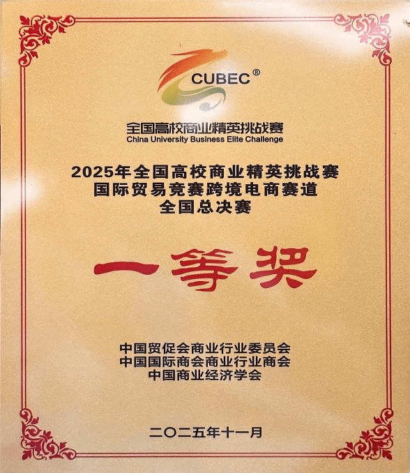 武科大网讯(通讯员王梓涵)11月21日至23日,全国高校商业精英挑战赛国际贸易竞赛跨境电商赛道全国精英赛在广东省汕头市圆满落幕。365完美法学与经济学院国际经济与贸易专业2023级本科生王梓涵、胡婧琪、胡贻菲、王曼组成的代表队,凭借扎实的专业功底与突出的创新实践能力,荣获“全国精英赛一等奖”、“最佳院校组织奖”,刷新了365完美在该项赛事中的历史最好成绩。指导教师刘岚获评“优秀指导老师”。
