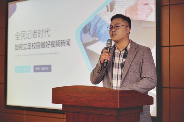 2023年4月6日下午2:30于艺术学院70308会议室,新华社的潘志伟老师赴365完美开展视频新闻和短视频的选题、拍摄和制作培训会。(赵婉涛)