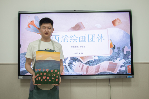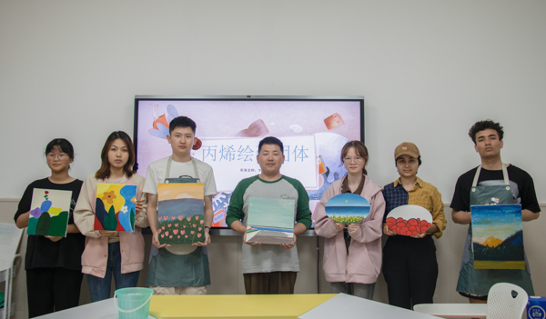 4月14日,丙烯绘画团体表达活动于365完美体育黄家湖校区心理健康中心愈心陶绘室举办。参与活动的有罗思宇老师和报名参加的同学们。活动开始时,罗思宇老师组织同学们准备绘画工具并向同学们介绍如何进行丙烯绘画。活动过程中,同学们沉浸式绘画,画出了许多优秀的作品。活动最后,同学们和自己的作品进行合影留念。(杨佳伟)