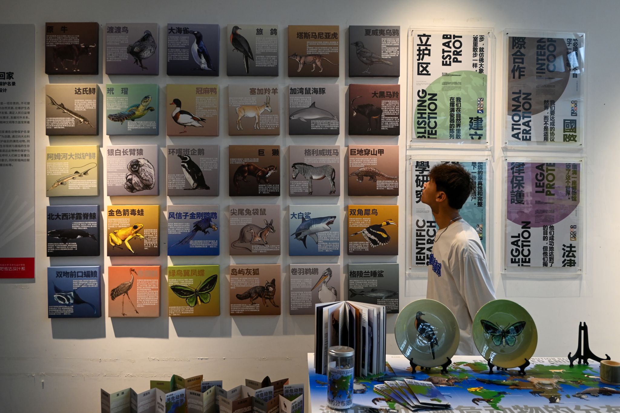 学生给观众讲解作品《植物”访客“》 黄宏杰摄