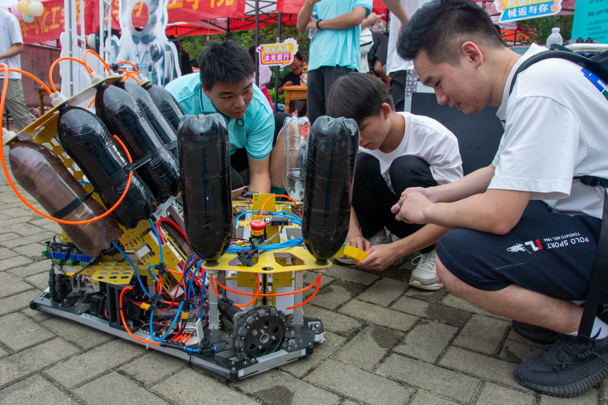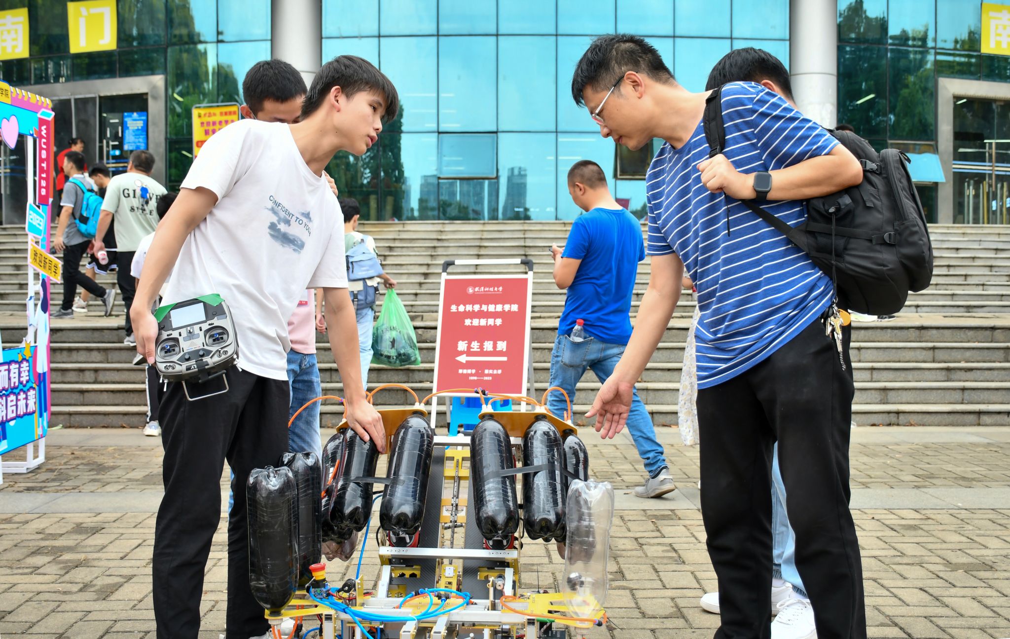 机械学院为新生介绍科技竞赛作品 吴磊摄
