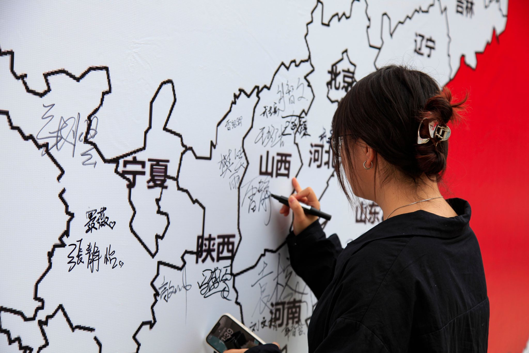 管理学院新生中国地图式新生签名墙 吴毅萌摄