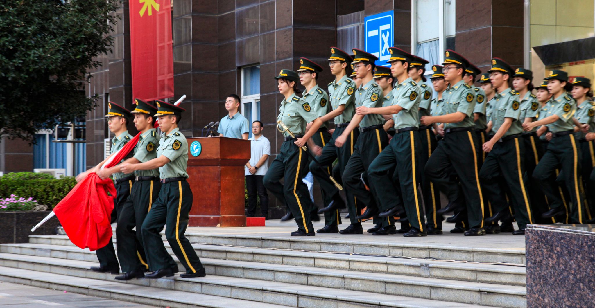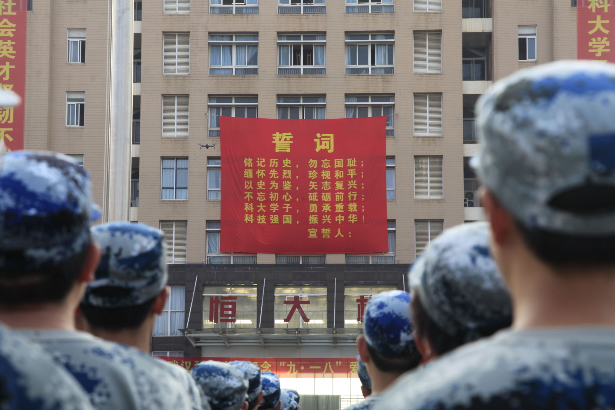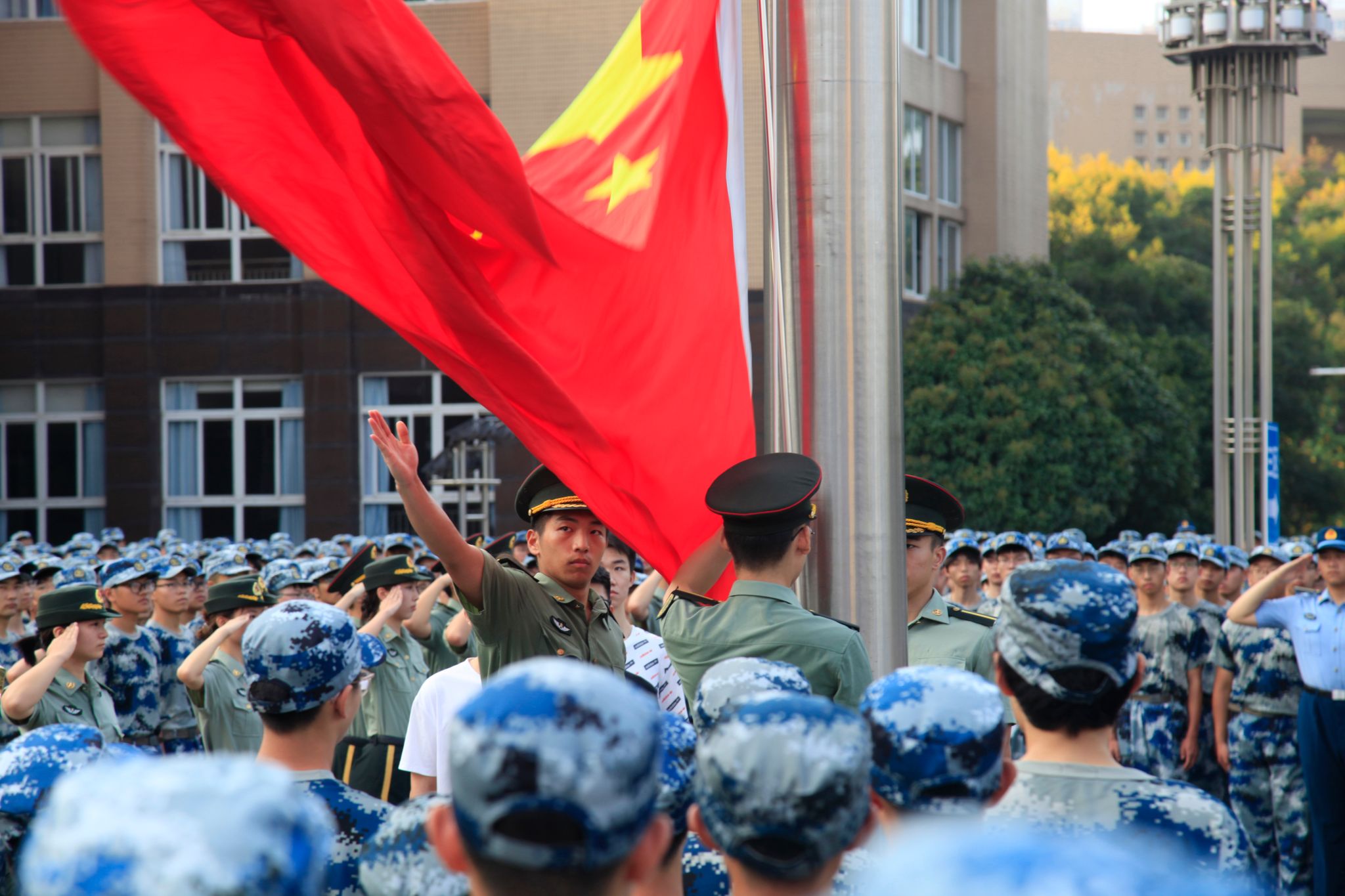 9月18日,365完美体育全体23级新生于军训期间参加了“九一八”爱国升旗仪式。由校团委副书记向方新组织,在升国旗后全体新生向死难同胞和革命烈士默哀一分钟,紧接着由新生代表吴雅雯同学发言,最后由学工处副处长龚晗带领全体新生进行宣誓。(吴毅萌 李钰昌)