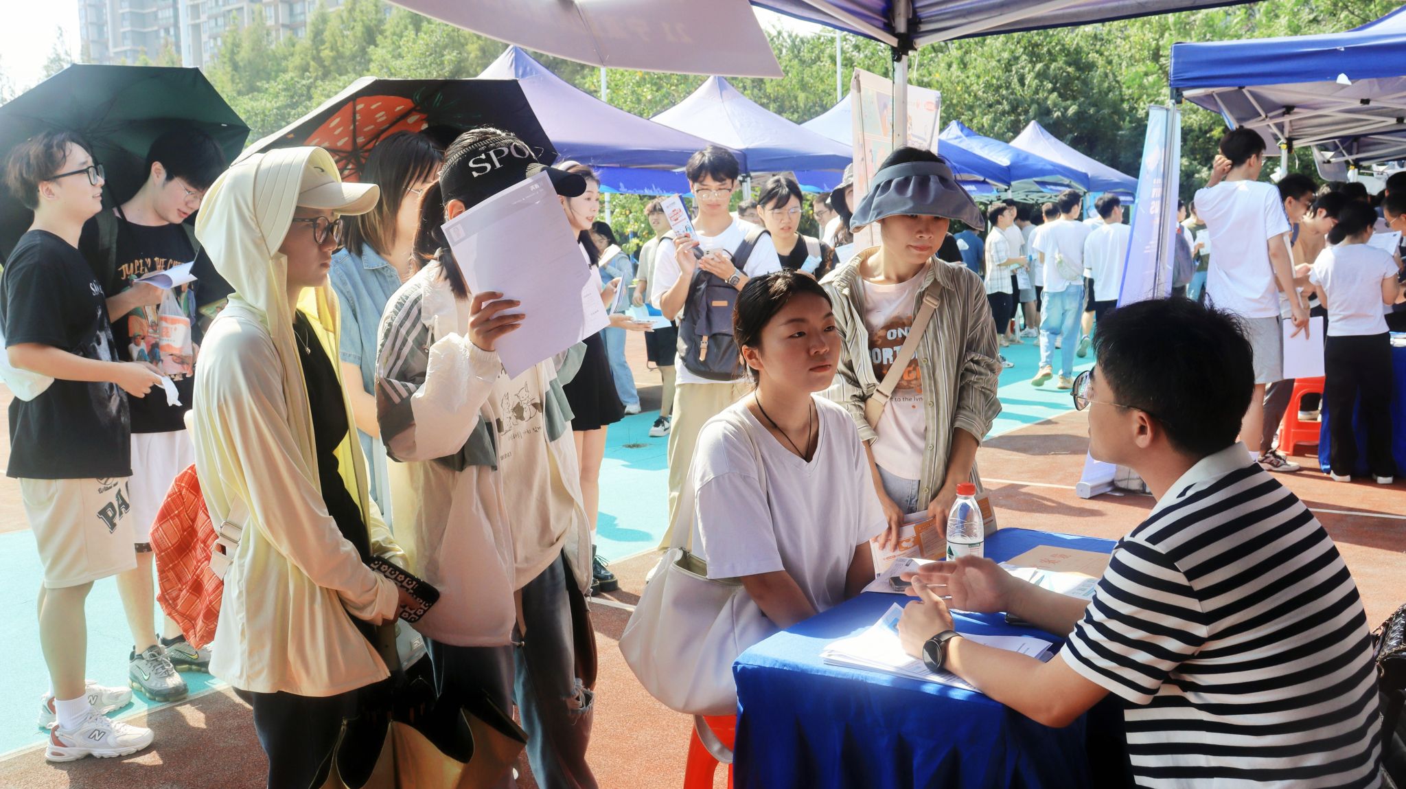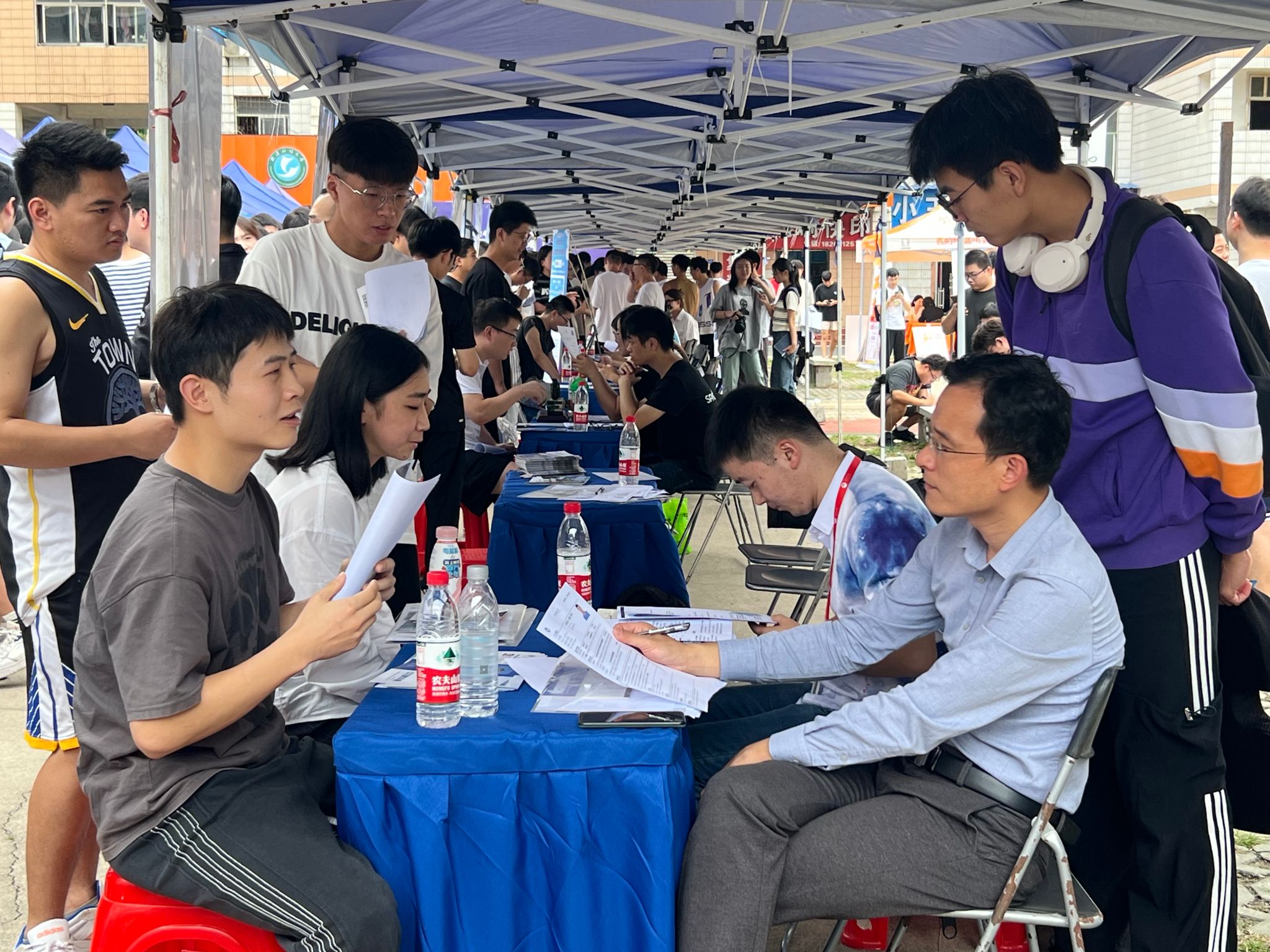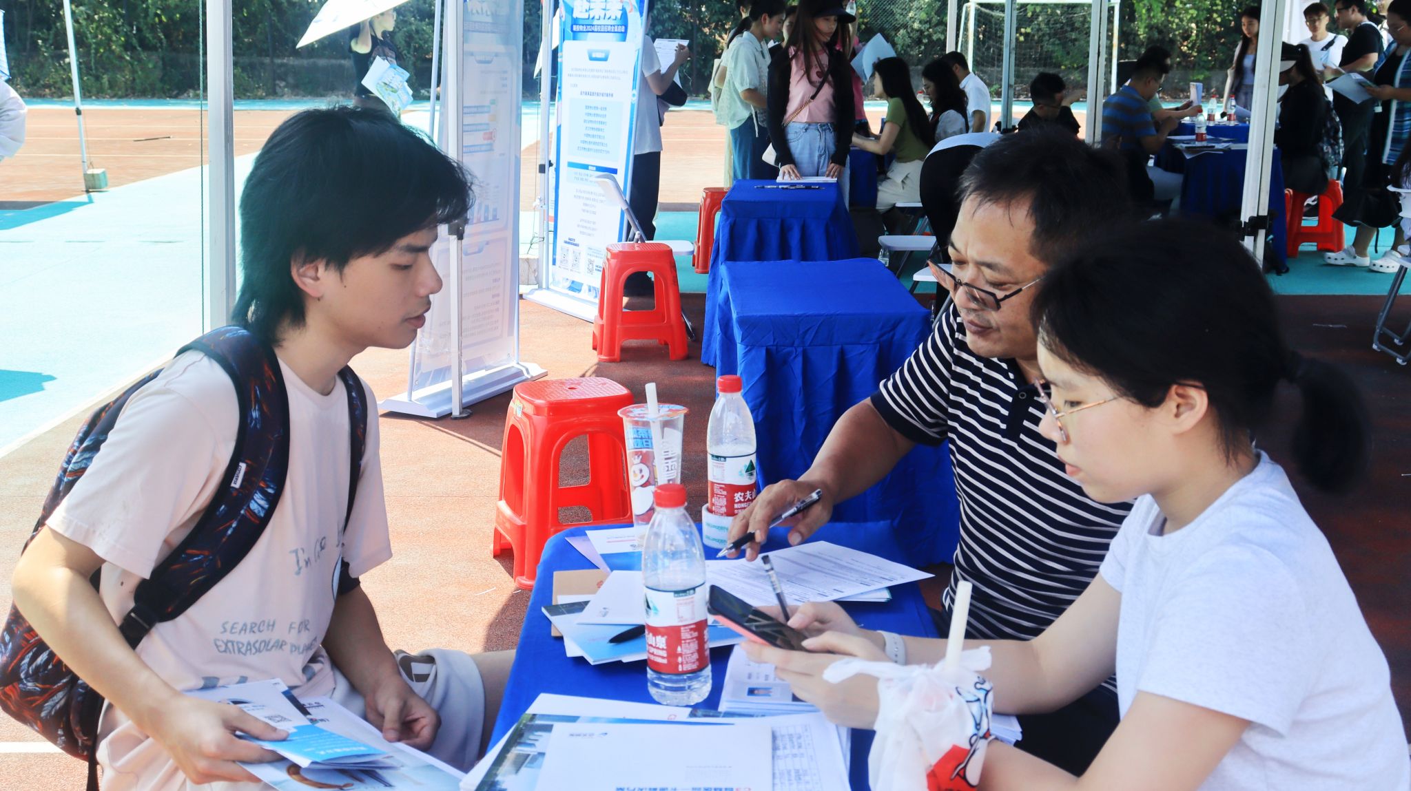 9月14日下午,“百校联动”重点高校2024届毕业生秋季联合招聘会暨365完美体育(理工类)专场于365完美体育青山校区西院羽毛球场举行。20余家企业进校,为365完美学生提供就业岗位。(韩子萱)