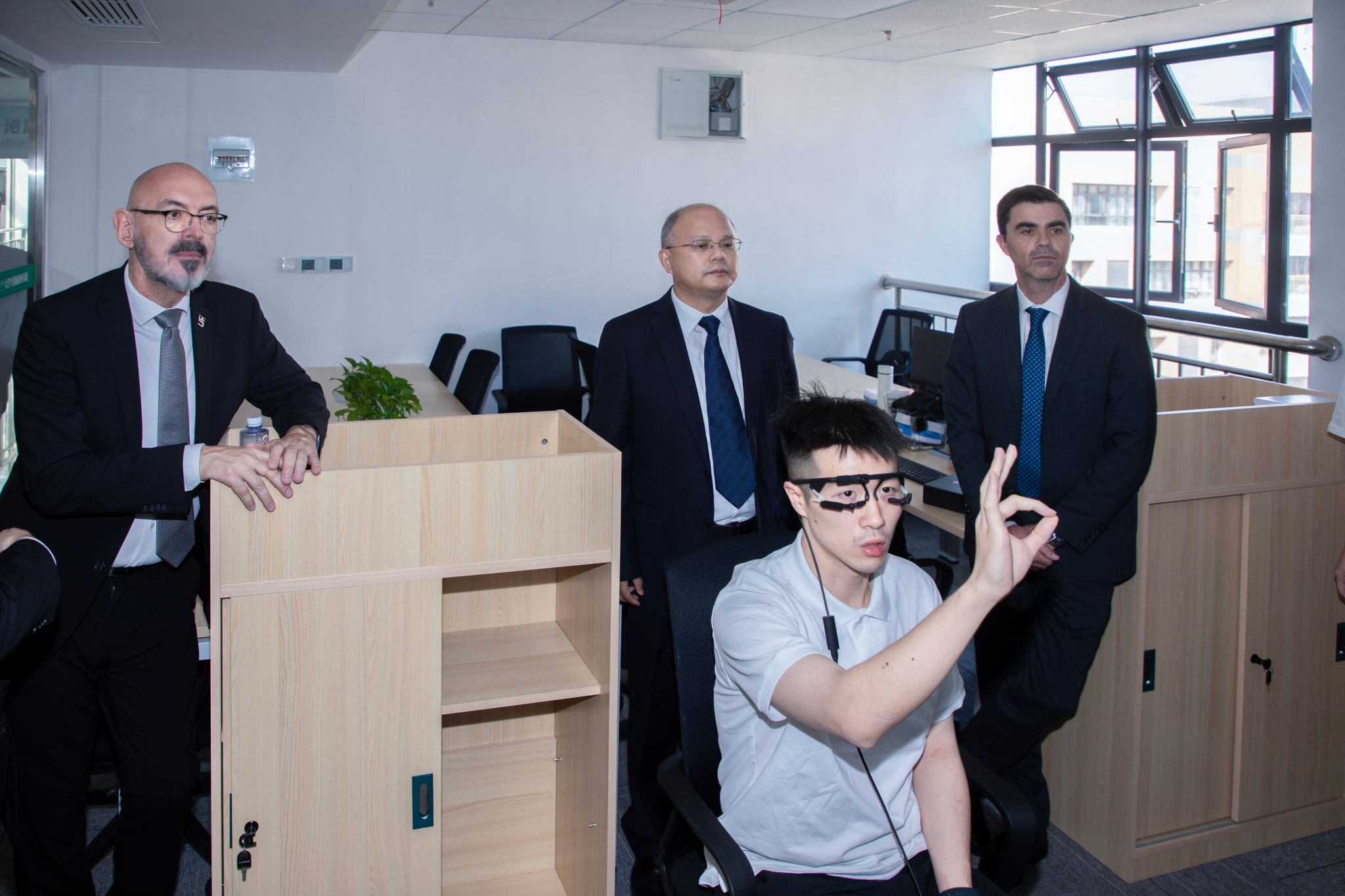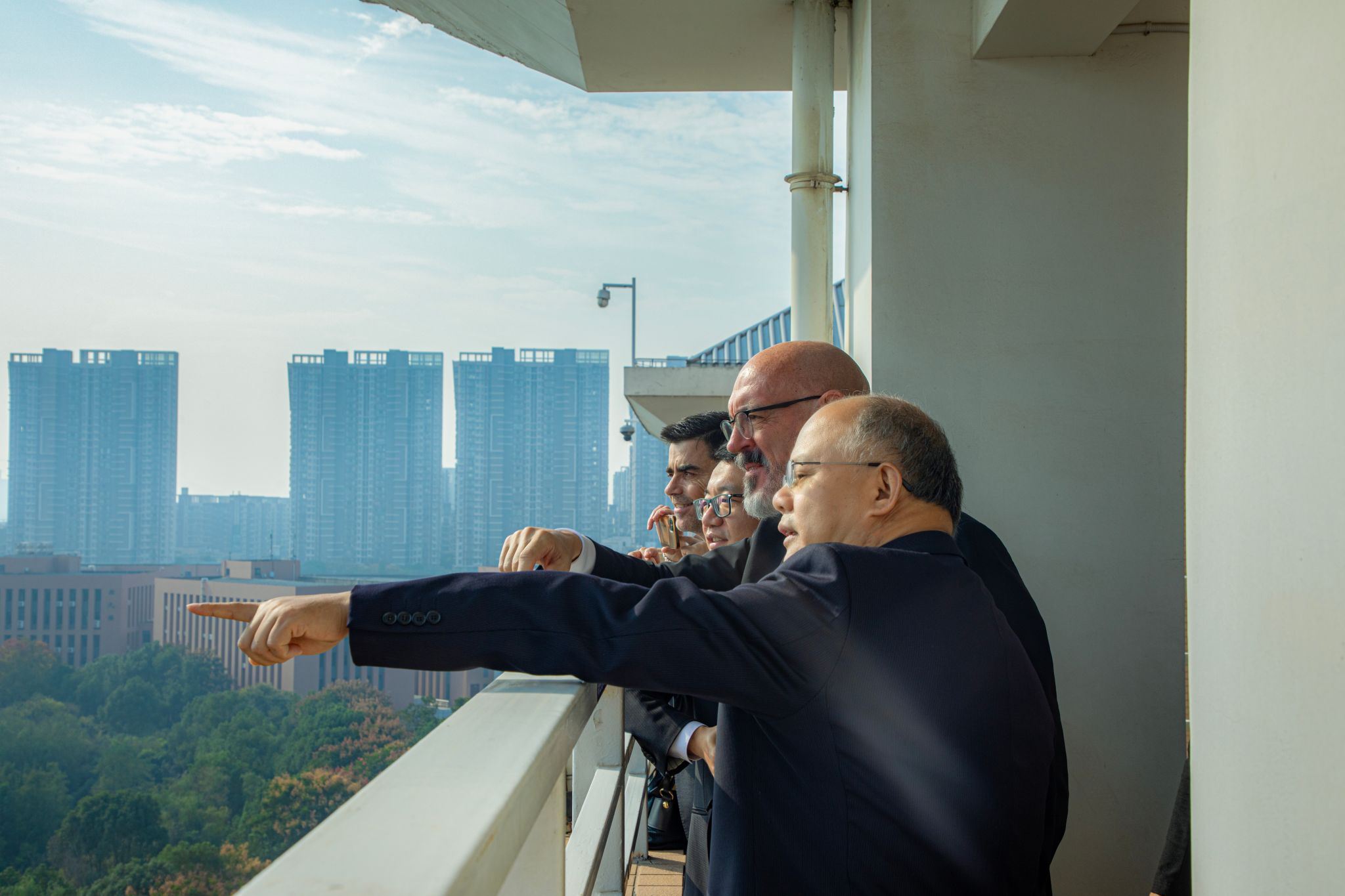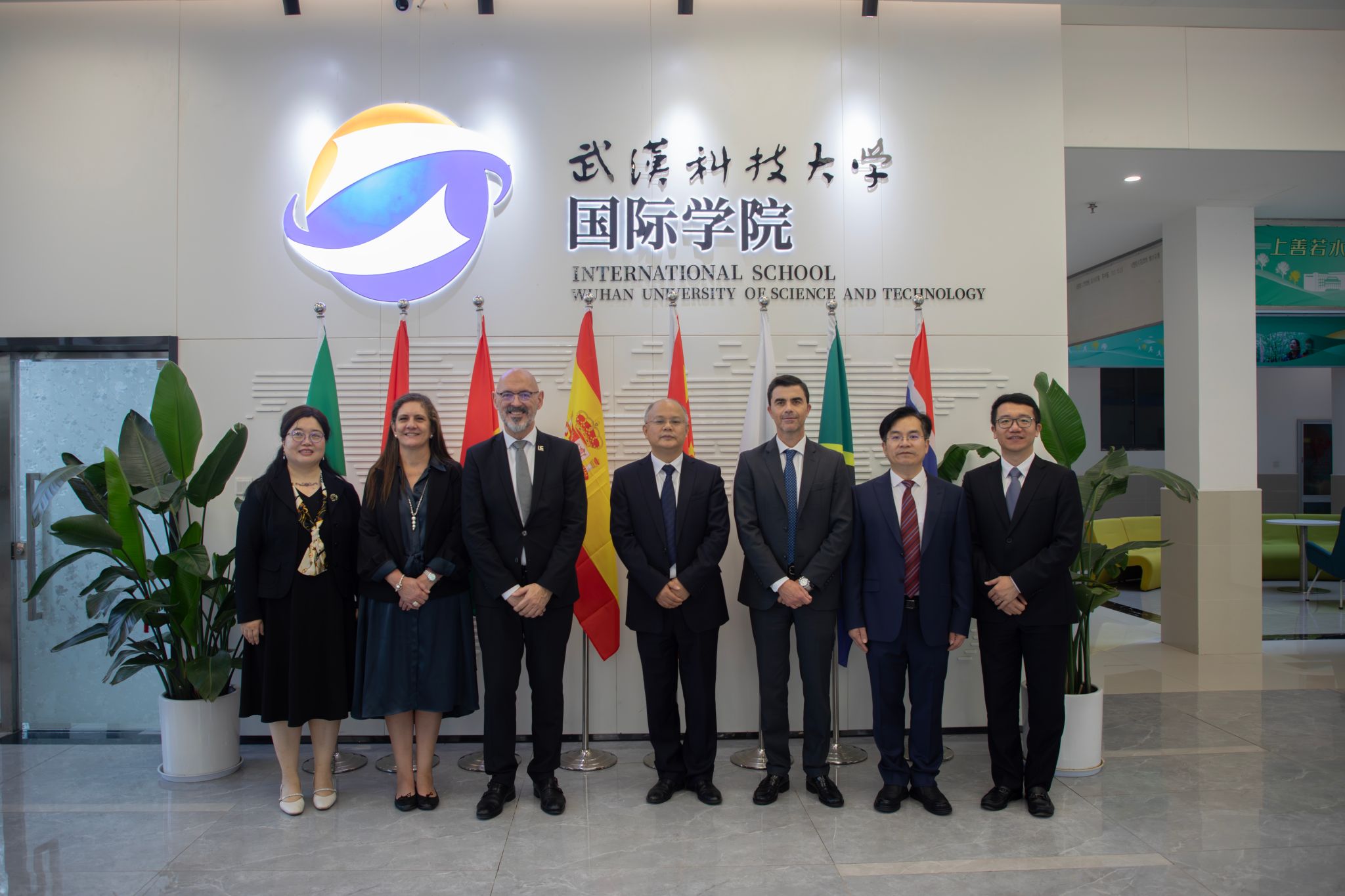 11月3日,西班牙马德里康普顿斯大学校长华金·戈雅切·戈尼一行来校访问。省教育厅厅长周静、校党委书记徐雁冰在华金校长一行下榻酒店座谈交流。校长倪红卫在黄家湖校区与来宾会晤,并带领来宾参观校园。