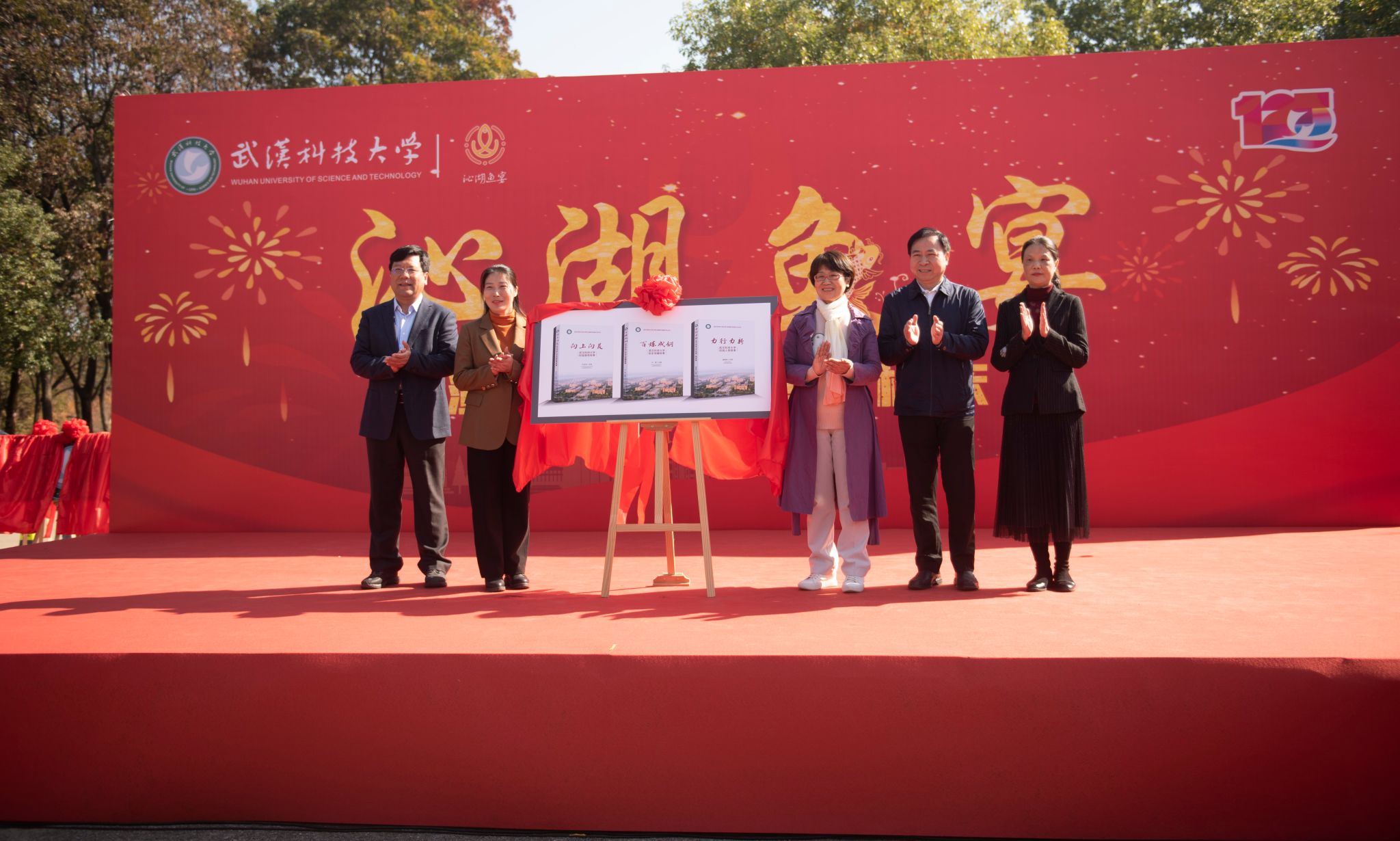党委副书记孙国胜、副校长沈季伟公布沁湖文化标识 梁绮琪摄