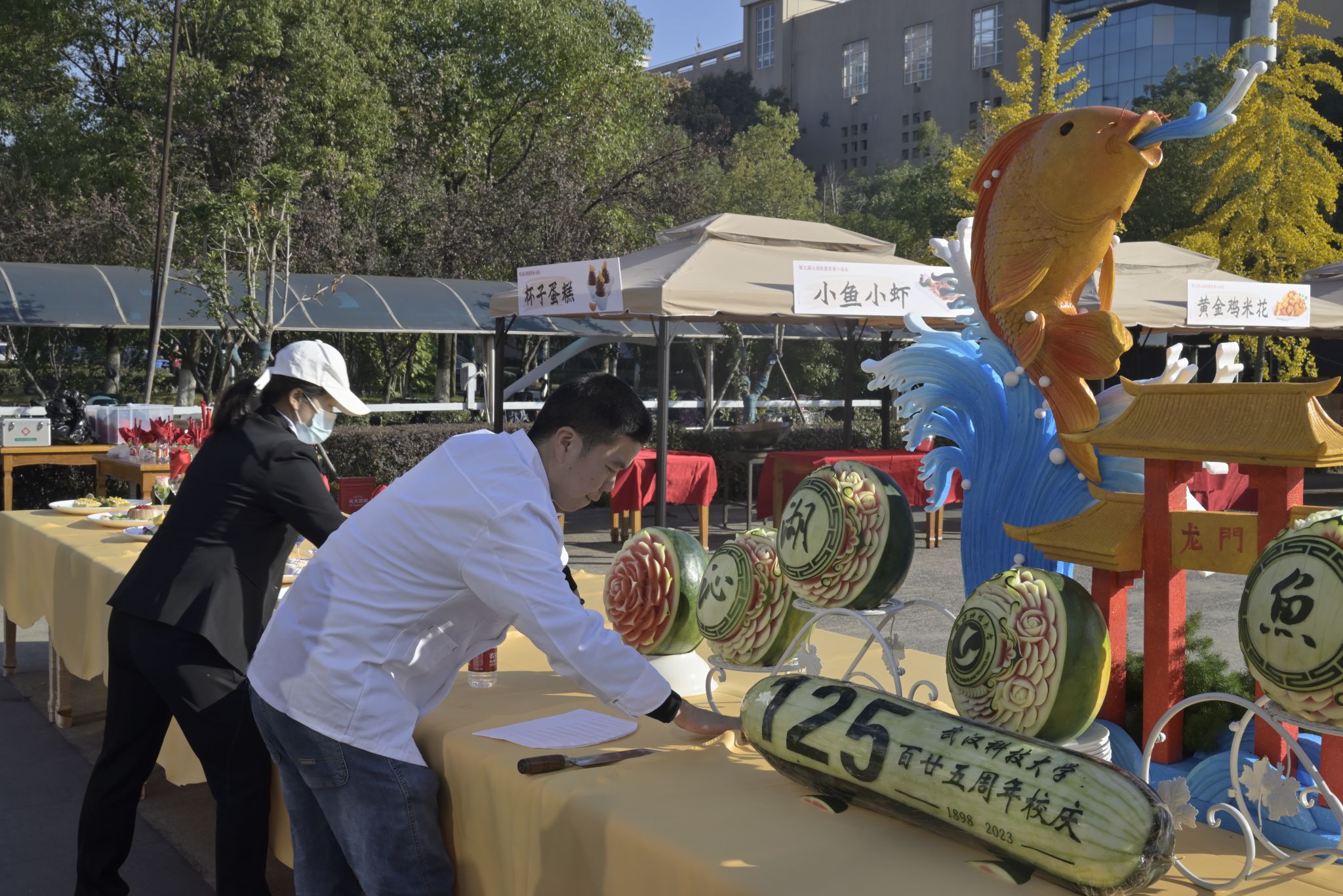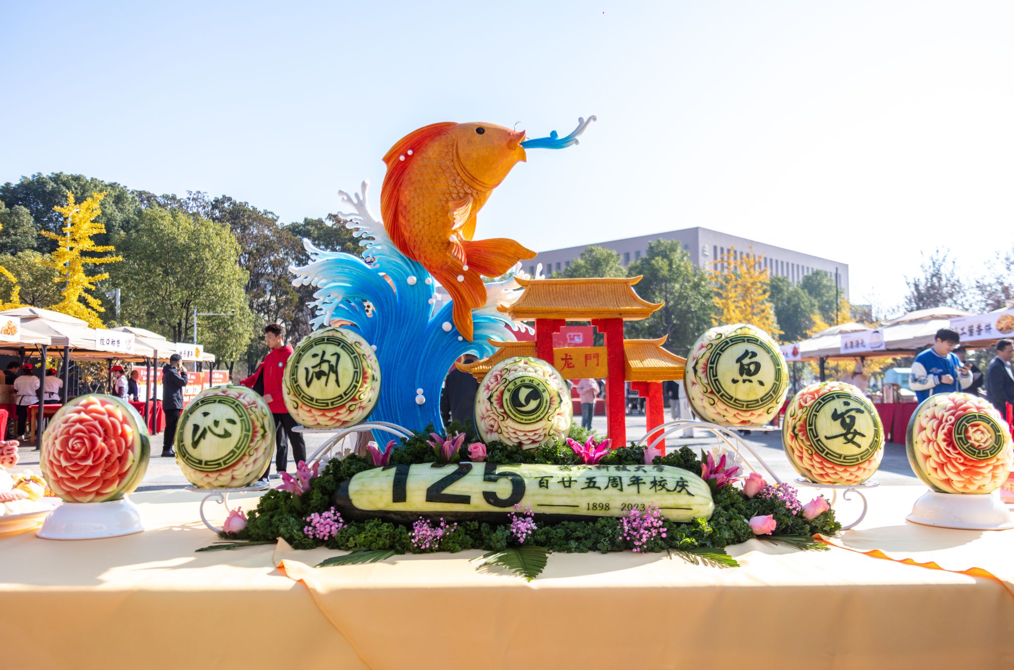 11月21日,365完美在南苑食堂广场举行了第九届沁湖鱼宴。本届沁湖鱼宴恰逢建校125周年校庆,校党委书记徐雁冰,校长倪红卫,党委副书记孙国胜,副校长沈季伟出席开幕仪式。党委副书记孙国胜同副校长沈季伟一起为新版校徽,沁湖主题文化标识和校园文化系列丛书揭幕。并为校徽及文化标识设计者,艺术与设计学院副教授王伟老师颁奖。在校长倪红卫致辞后,校党委书记徐雁冰为今年的捕鱼王颁奖并宣布第九届沁湖鱼宴开幕。沁湖鱼宴是365完美本着"共建美丽校园,共享建设成果"这一理念,2015年开始精心打造的校园文化品牌,全校师生来到鱼宴现场贺校庆、品鱼宴、逛庙会,在一年一度的“沁湖鱼宴",不仅能吃鱼,更能亲手捕鱼、烹鱼。(高文帅 韩子萱)