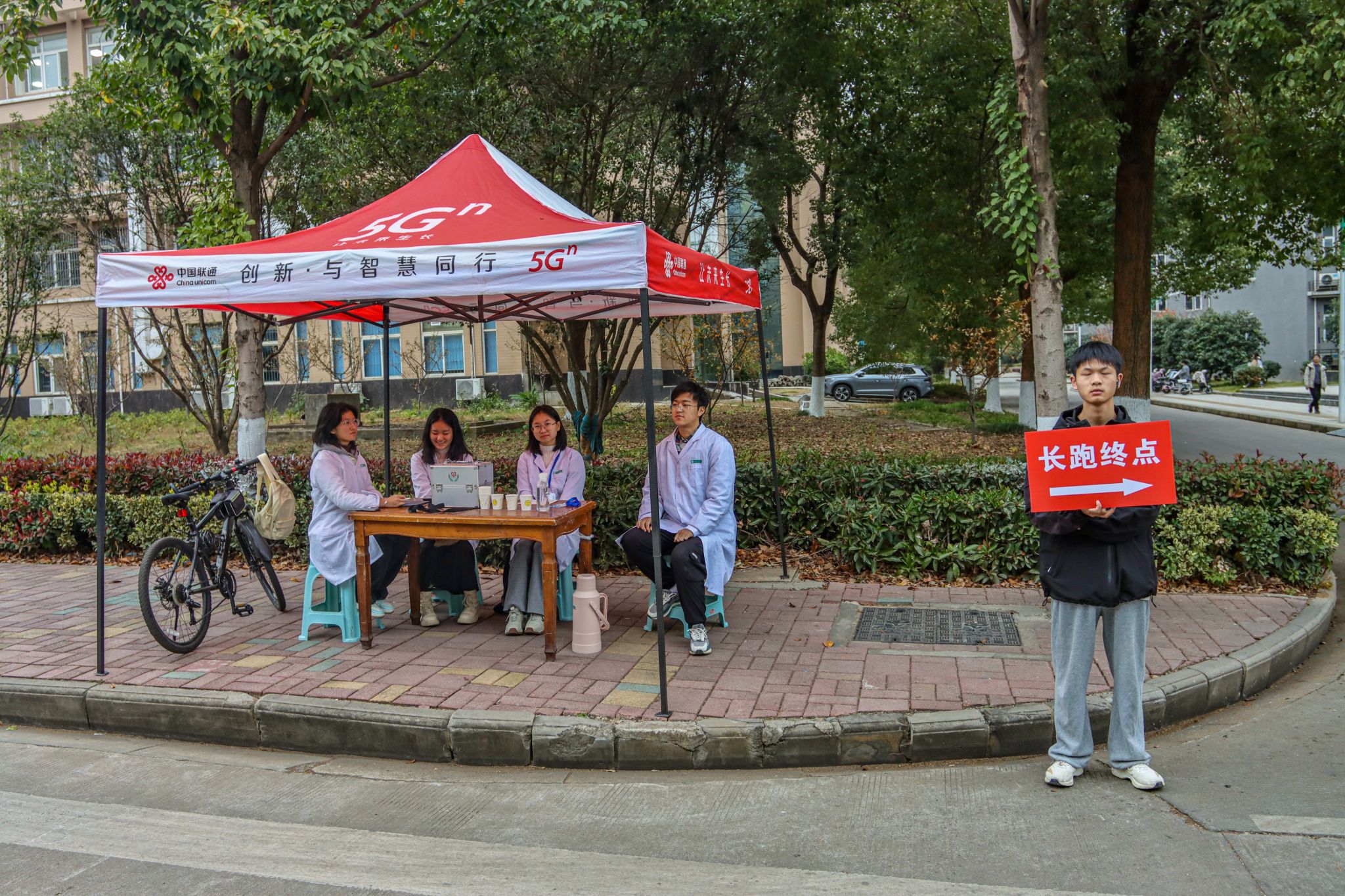 沿途志愿者及路标 杨曜恺摄