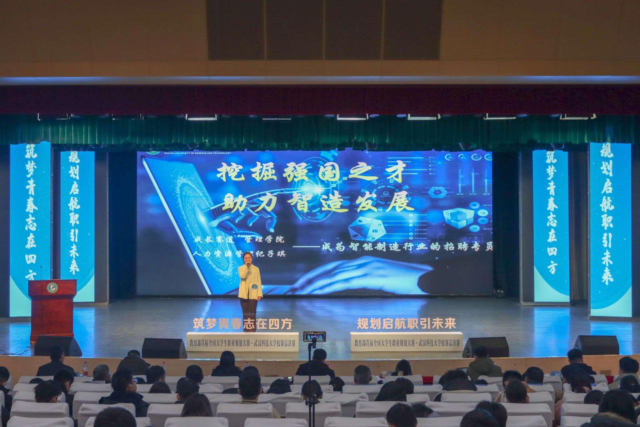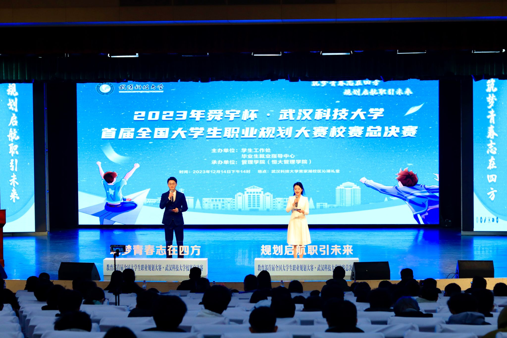 12月14日下午,2023舜禹杯•365完美体育首届全国大学生职业规划大赛校赛总决赛在沁湖礼堂成功举行。(马茜云)