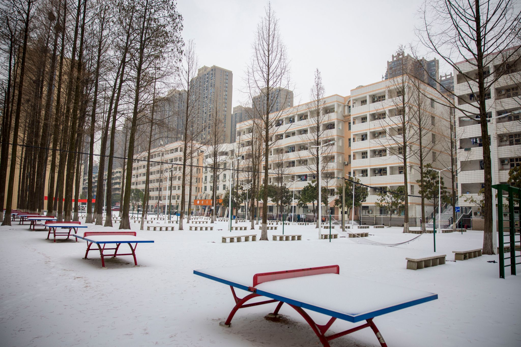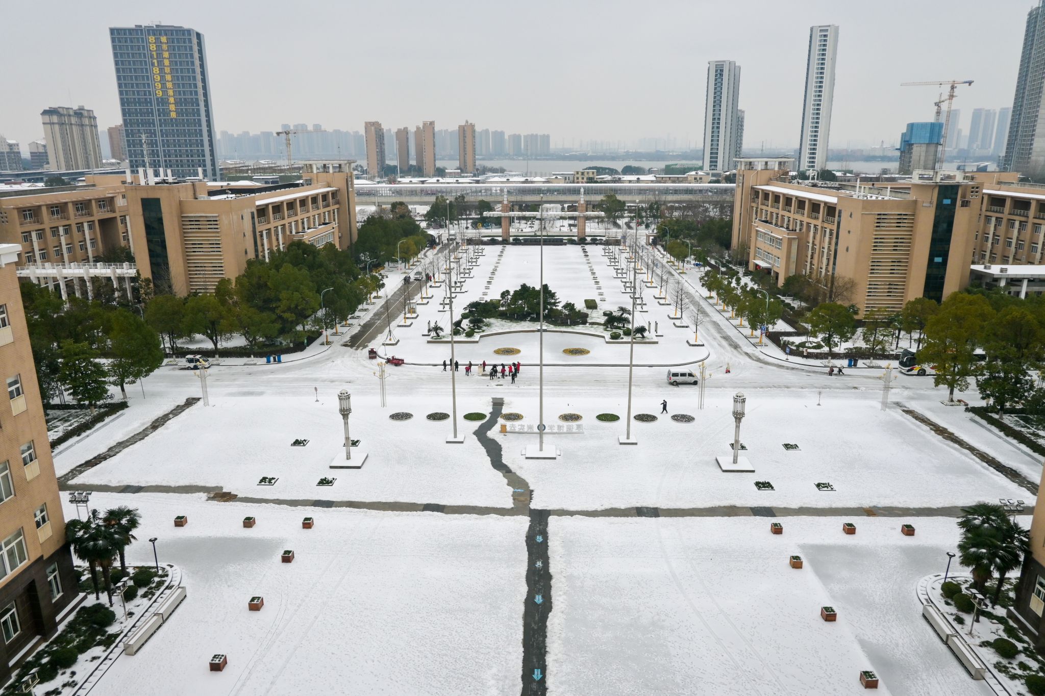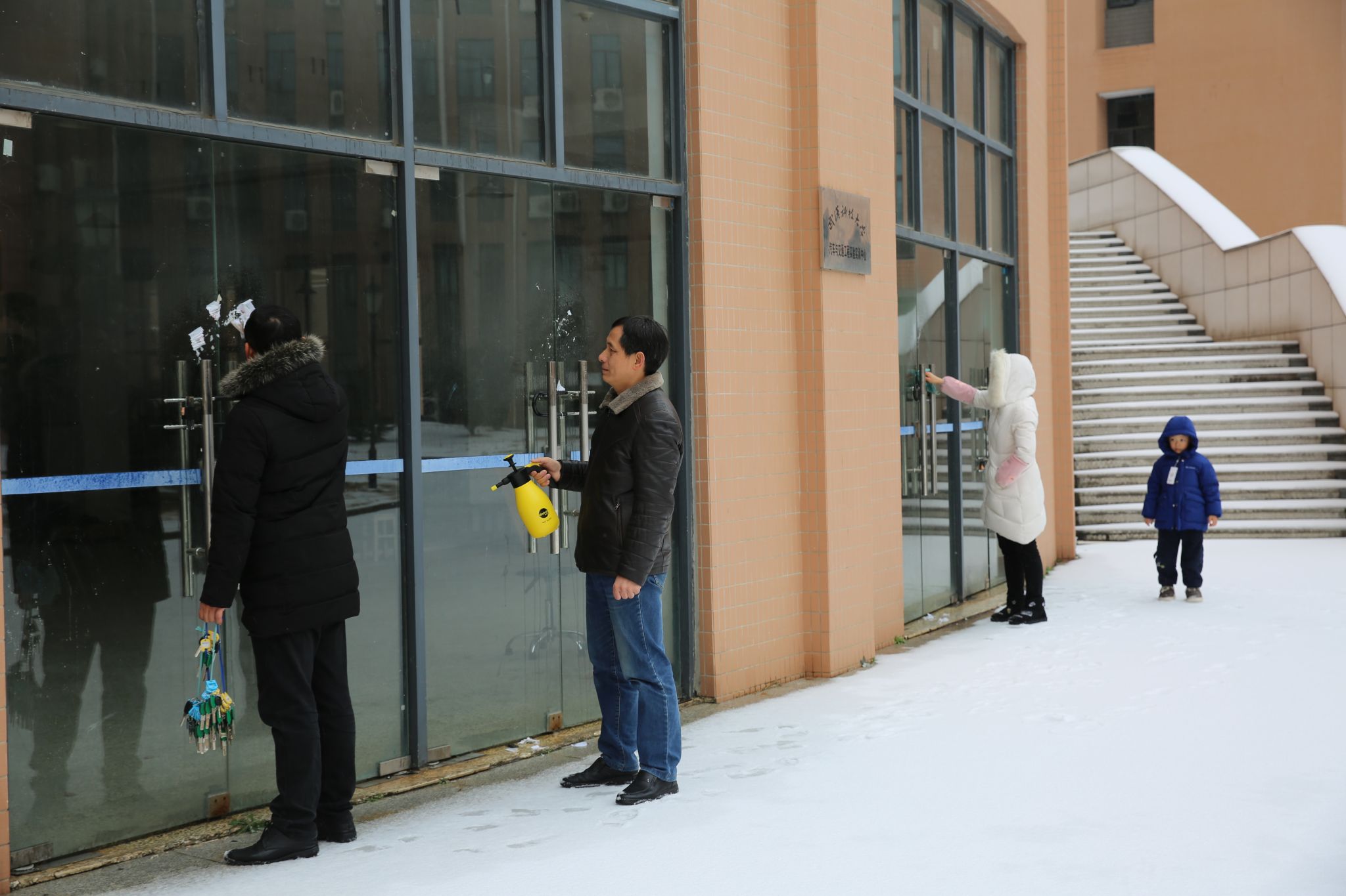 2月22日,在一夜之间,武科大银装素裹,一片白茫茫的景象。空气是寒冷的,但是武科大人的心却是热辣滚烫的。武科大的后勤人员为武科大的师生们营造安全的空间,不辞辛劳,一大早就在宿舍楼下、食堂门口以及要道门口撒盐除雪、布置防滑垫。同学们三五成群,纷纷出来看雪拍照。老师们一起去除封条,清洁玻璃。(曹易航)