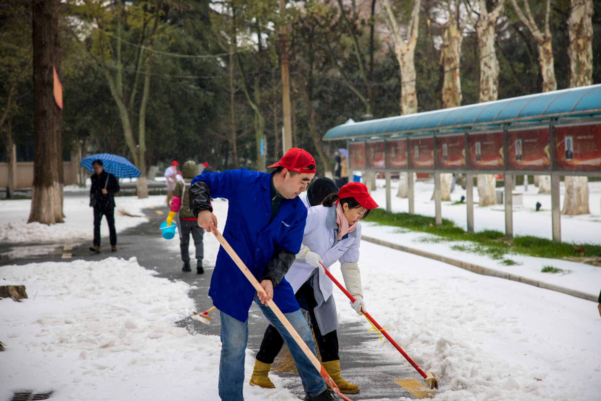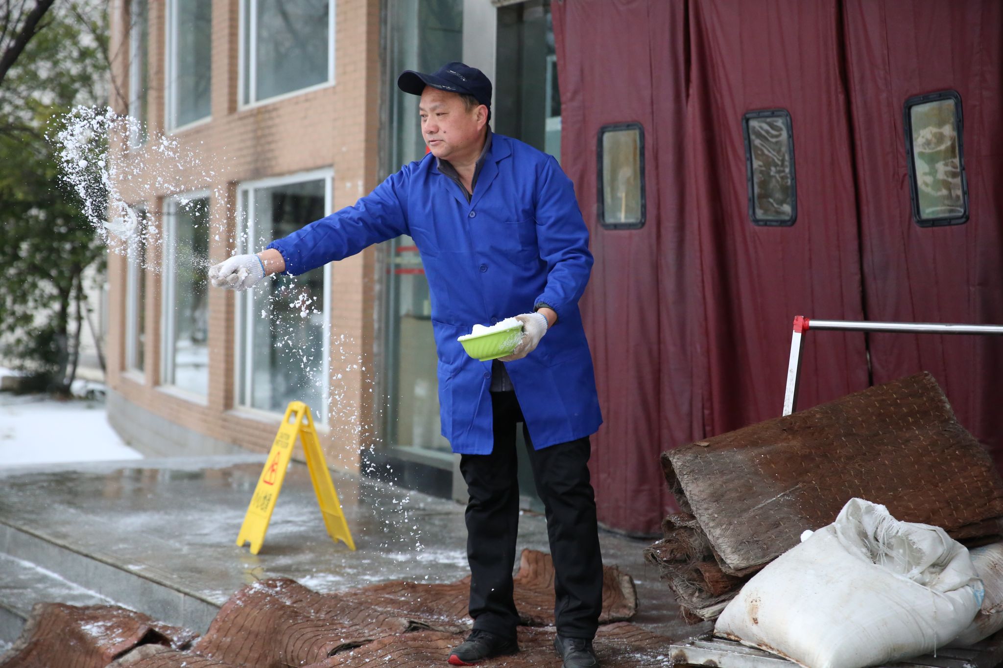 在食堂门口撒盐化雪的大叔 曹易航摄