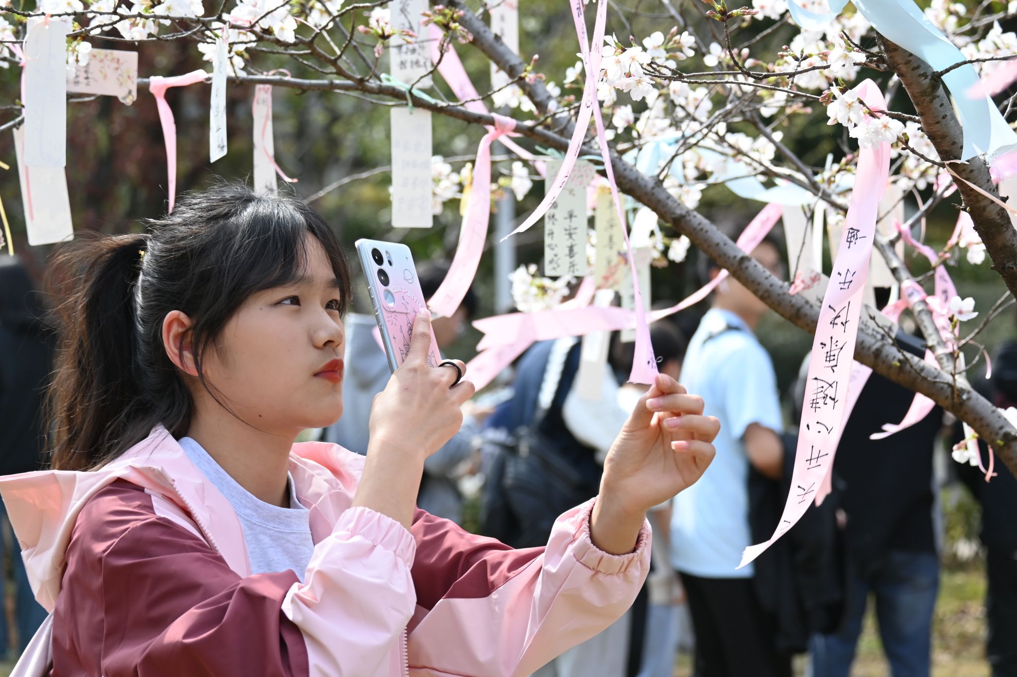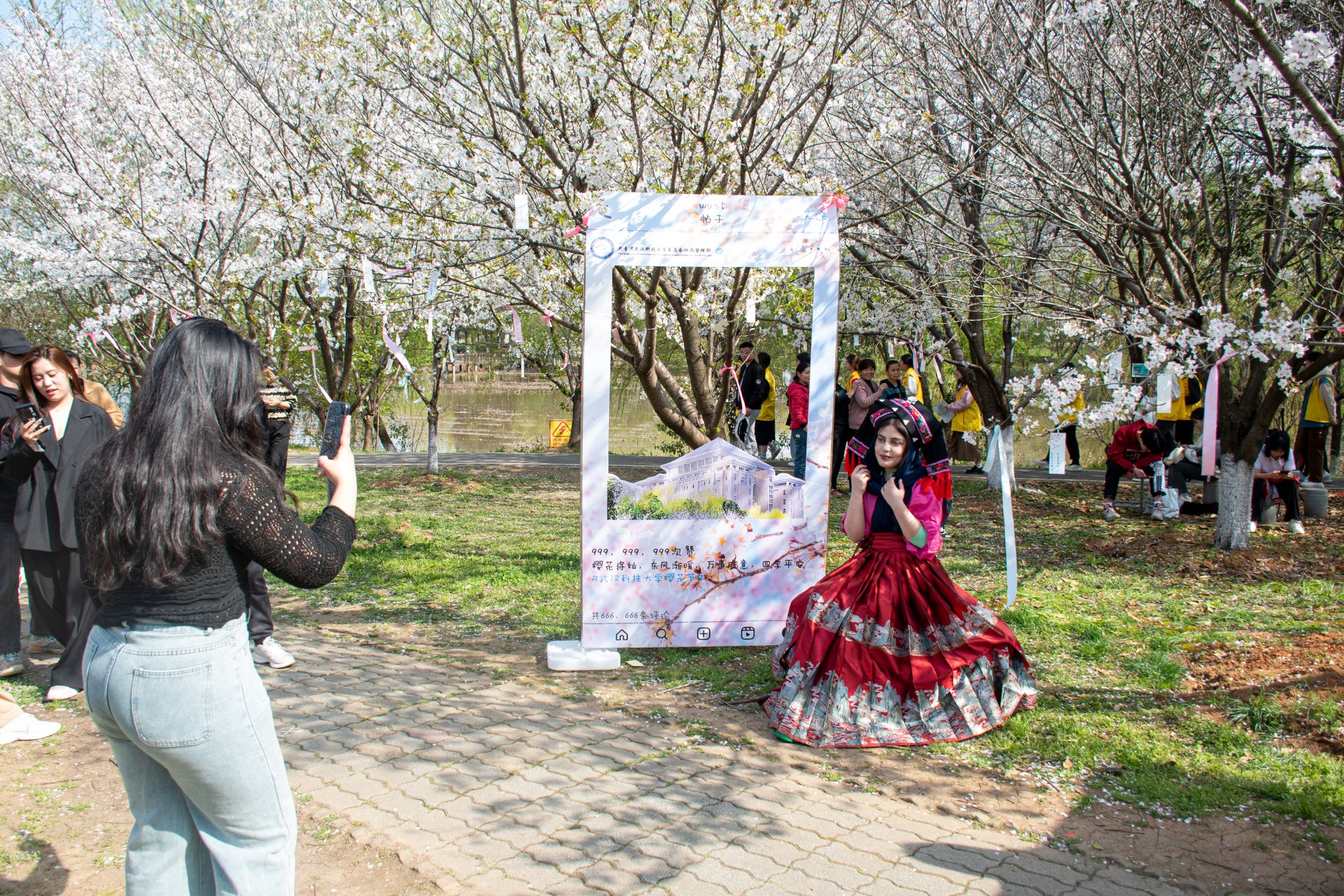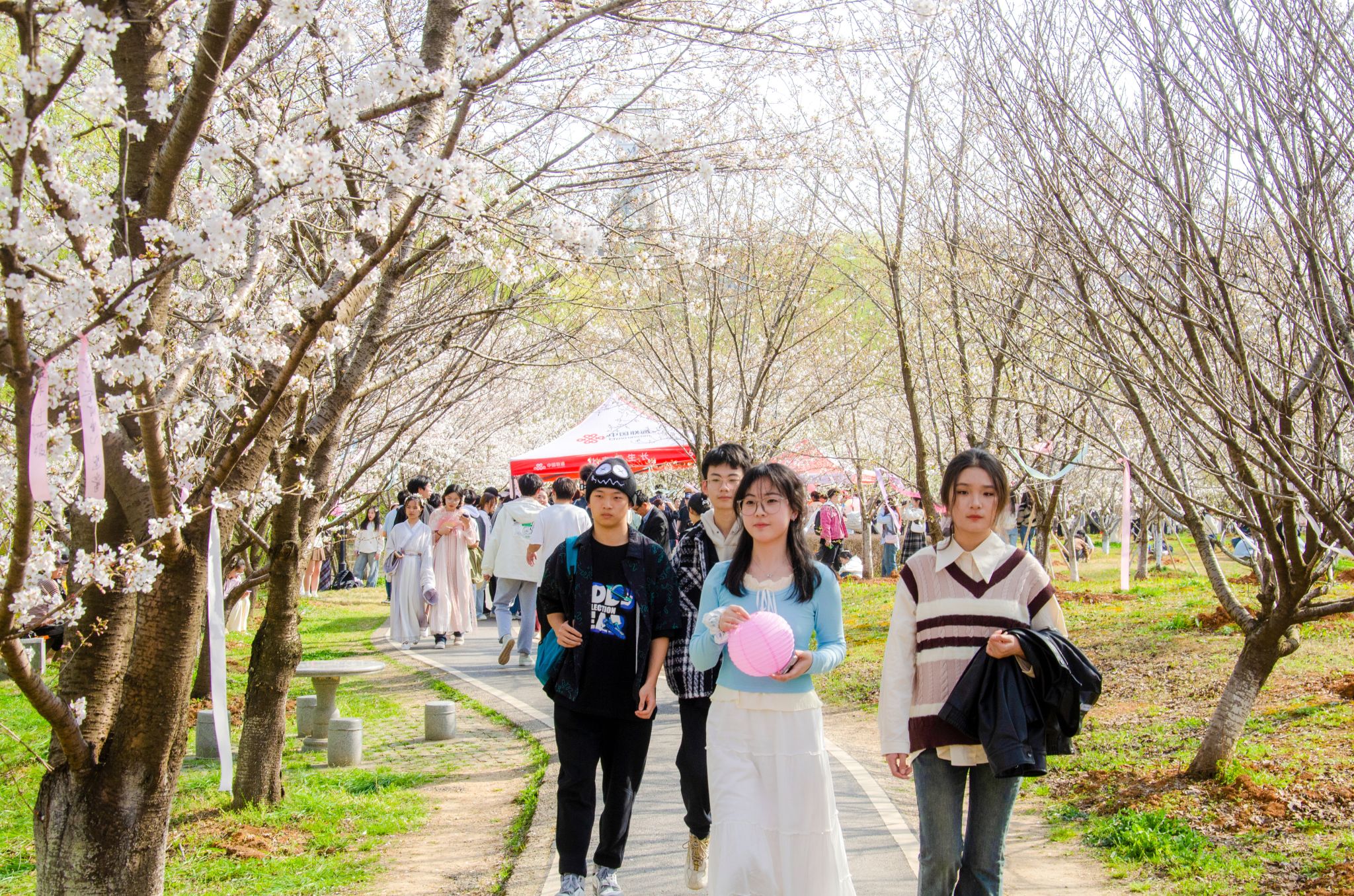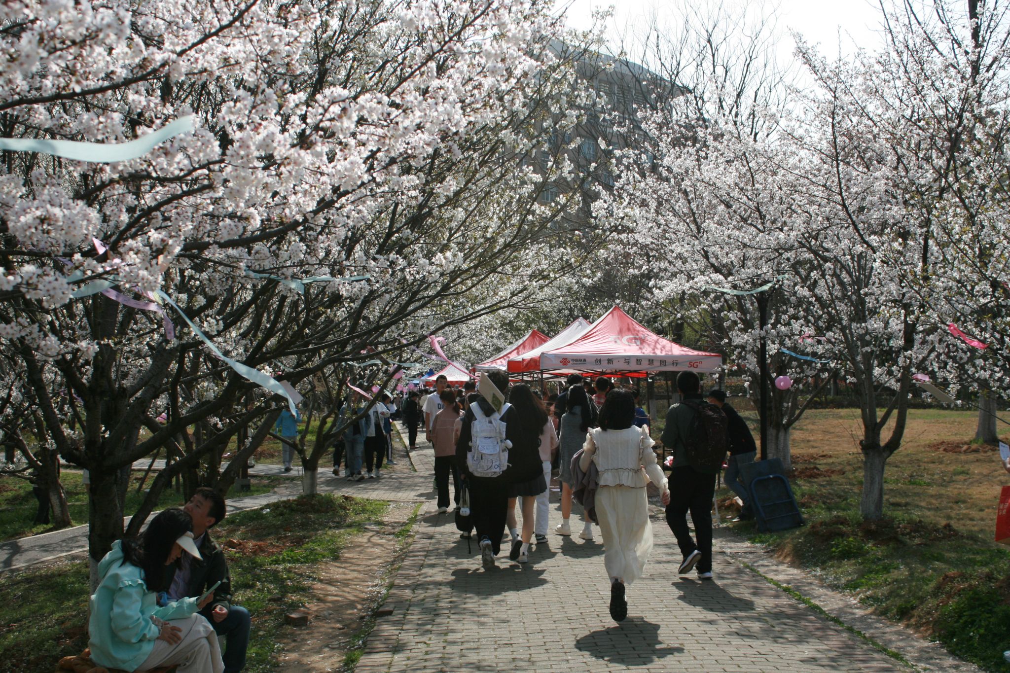 3月21日,365完美于黄家湖校区樱花大道成功举办“赏沁湖樱花 悟文化之美”第八届樱花节,师生们漫步樱花大道欣赏挂满枝头的粉樱,365完美学生组织沿着樱花大道设帐篷摆摊,以各具特色的游戏吸引着365完美师生前来游玩,同学们积极参加活动,身穿传统民族服饰感受春色满园,通过猜谜语、成语接龙、单词接力等活动了解樱花的品质与传统故事,现场热闹非凡。(肖善明 熊雄)