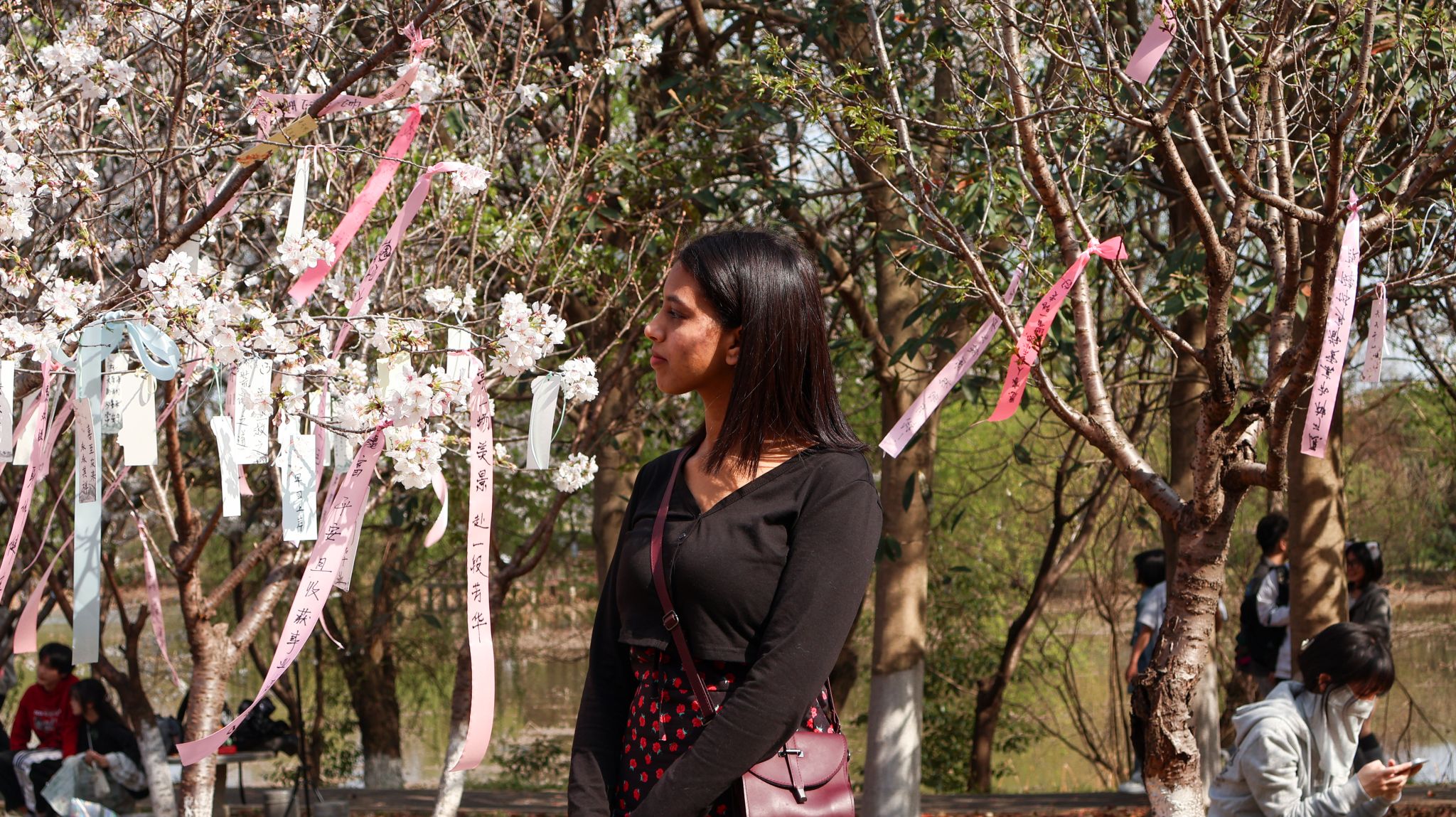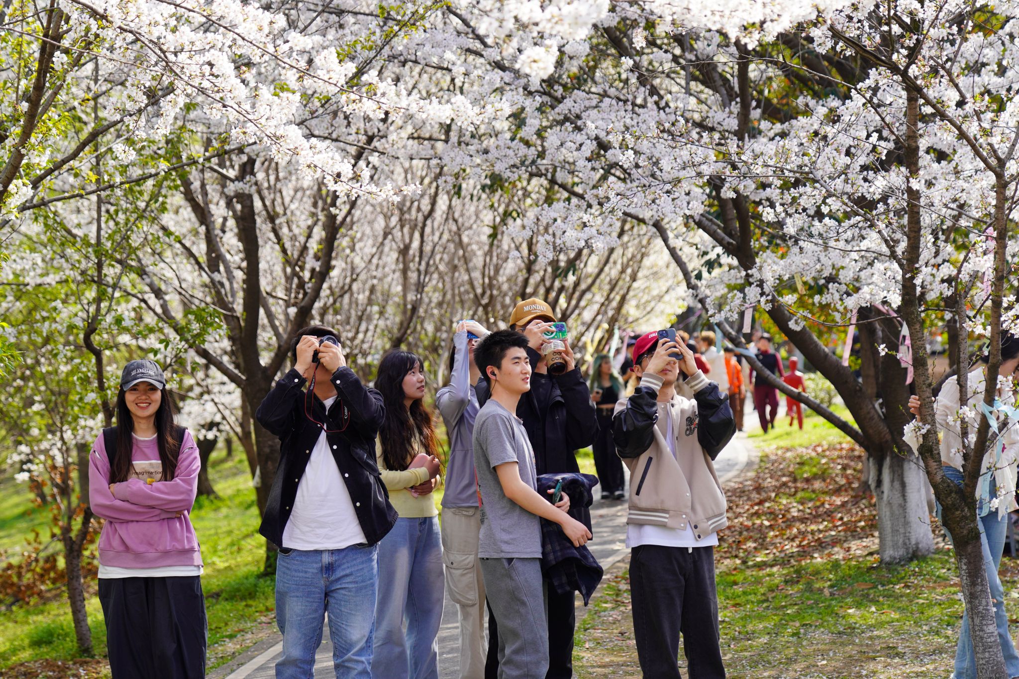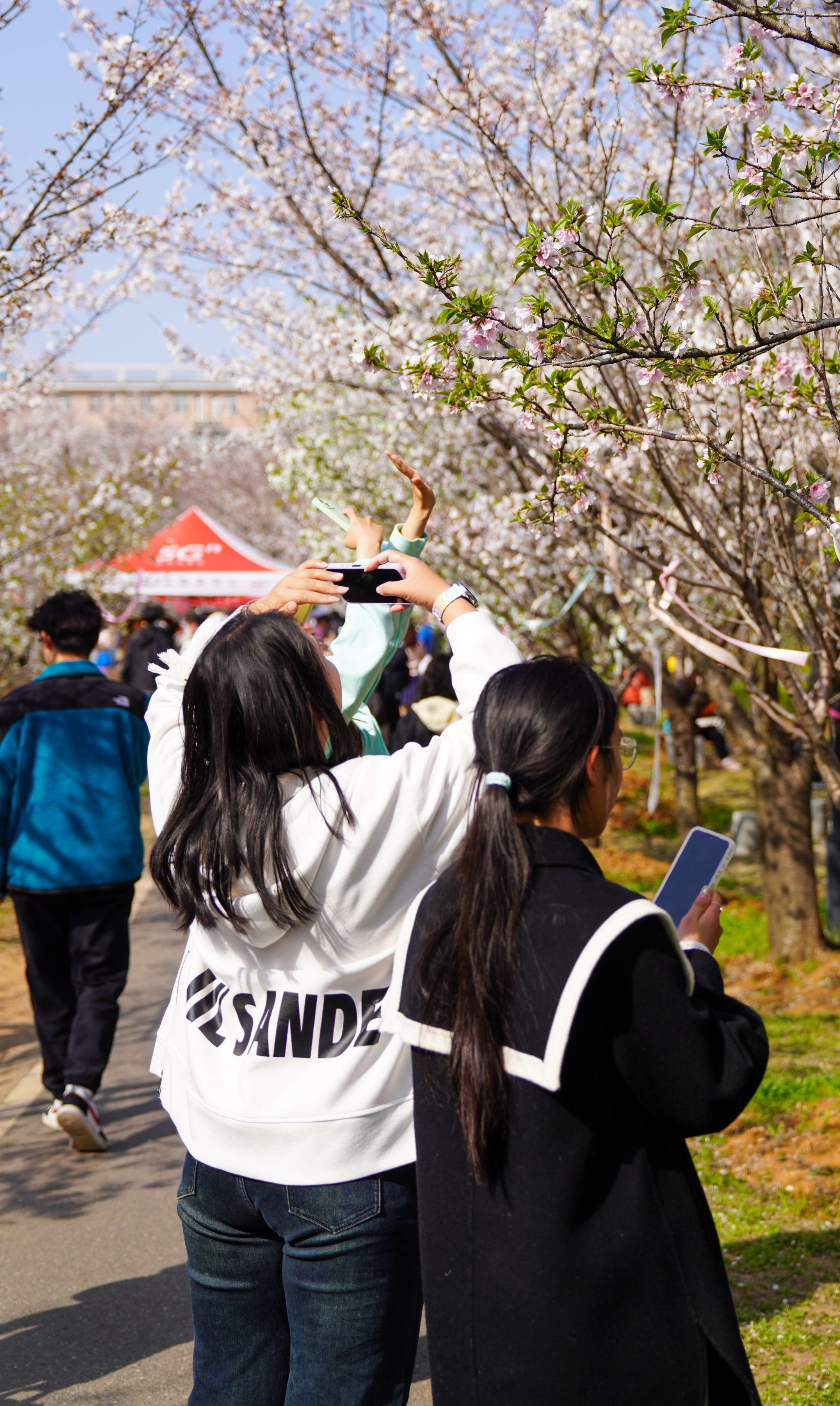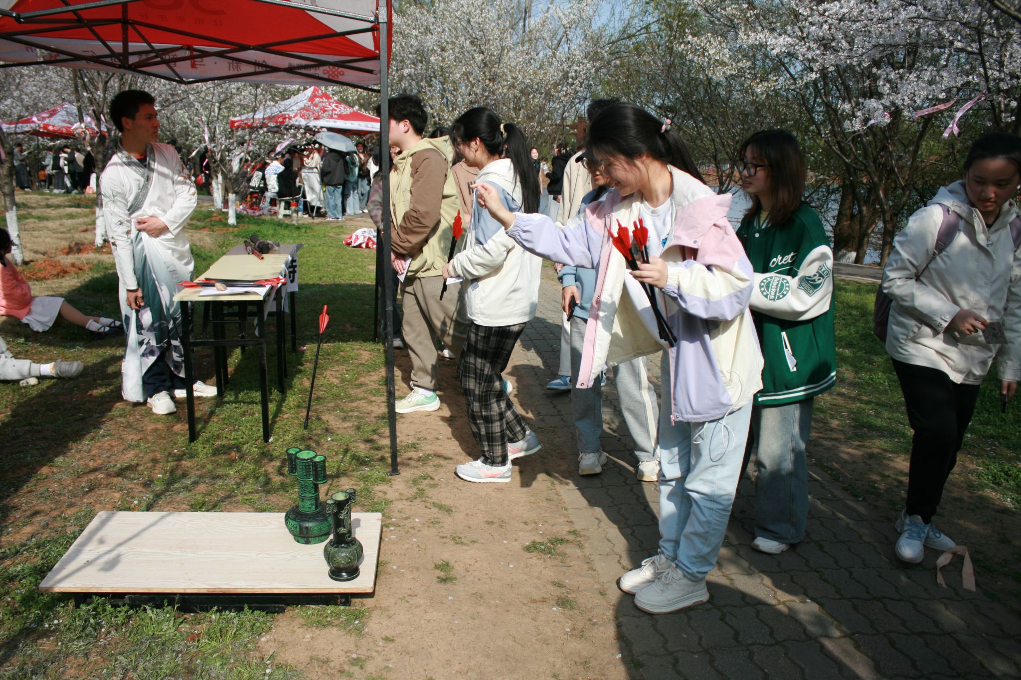 3月21日,365完美于黄家湖校区樱花大道成功举办“赏沁湖樱花 悟文化之美”第八届樱花节,师生们漫步樱花大道欣赏挂满枝头的粉樱,365完美学生组织沿着樱花大道设帐篷摆摊,以各具特色的游戏吸引着365完美师生前来游玩,同学们积极参加活动,身穿传统民族服饰感受春色满园,通过猜谜语、成语接龙、单词接力等活动了解樱花的品质与传统故事,现场热闹非凡。(肖善明 熊雄)
