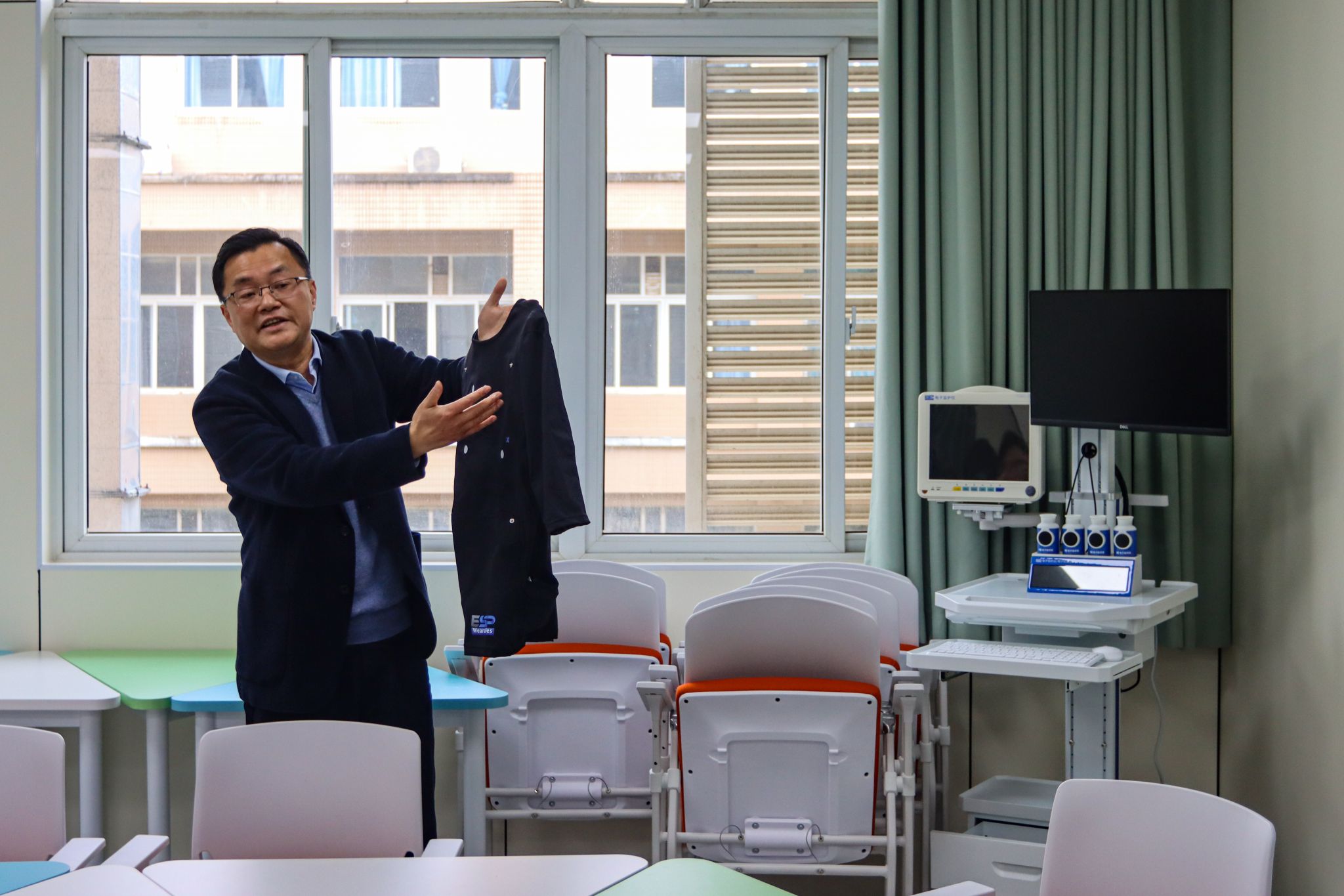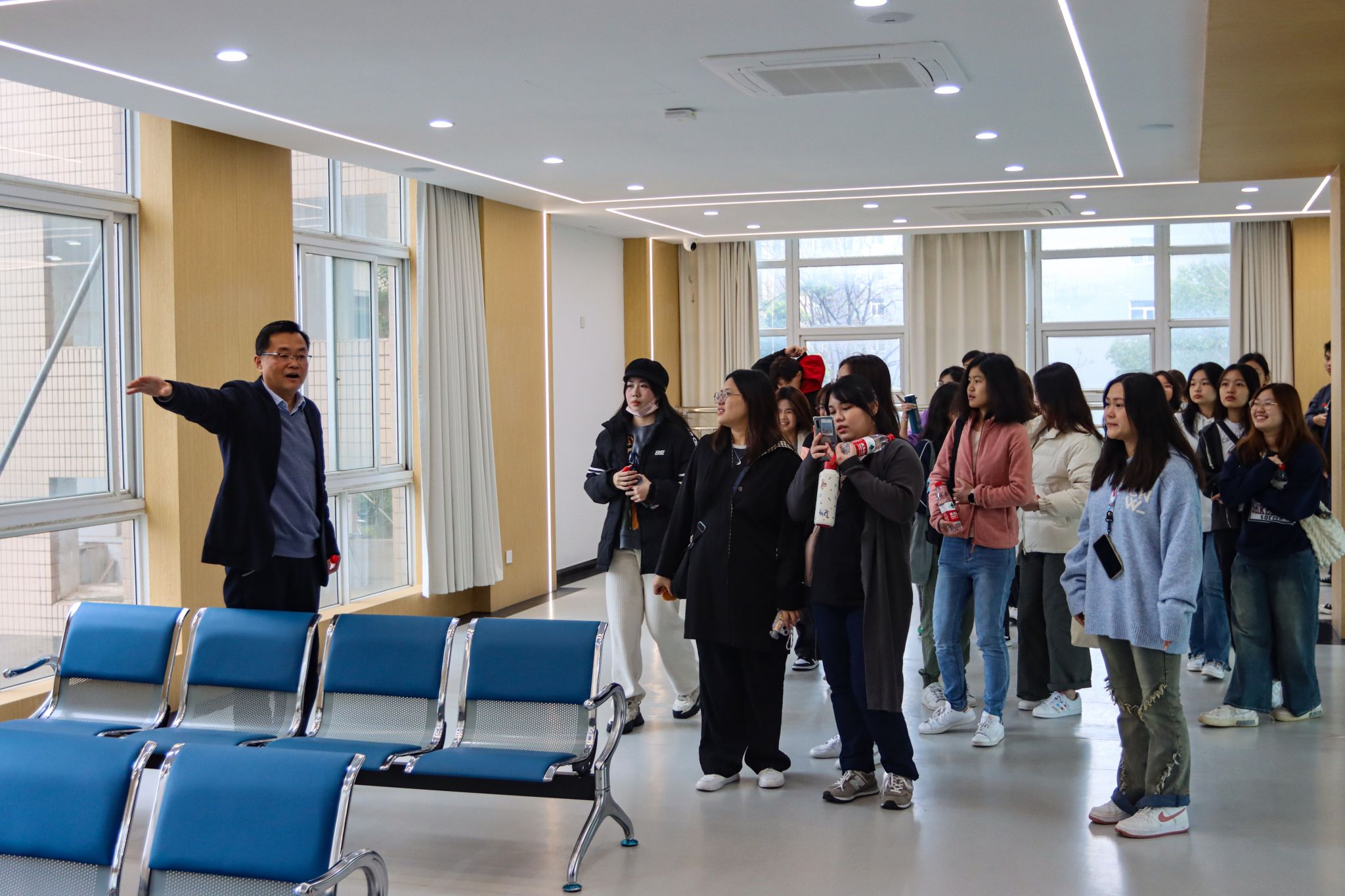 国际学院副院长陈勇给访学学生介绍设施 杨曜恺摄