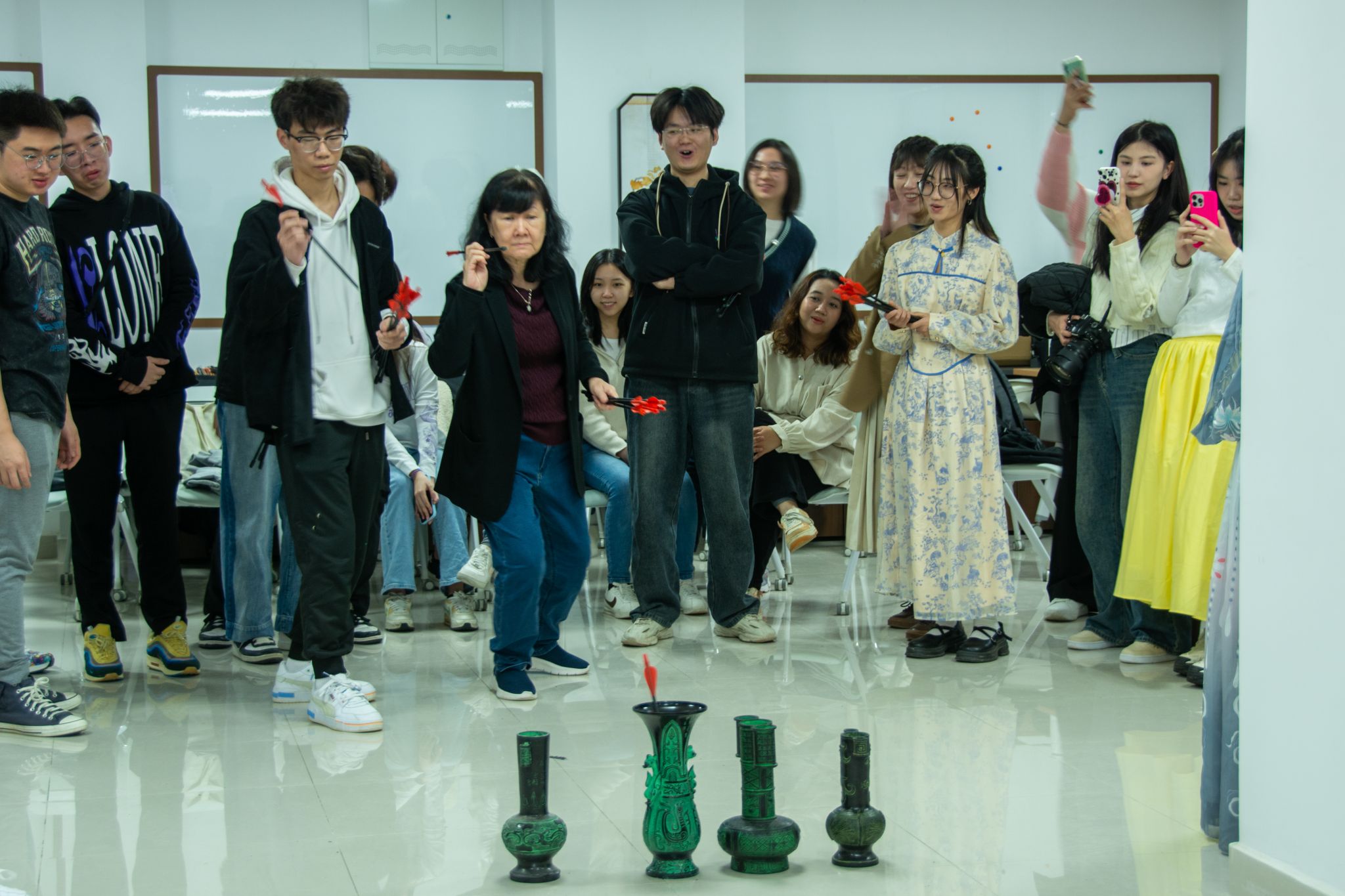 老师体验投壶 高文帅摄