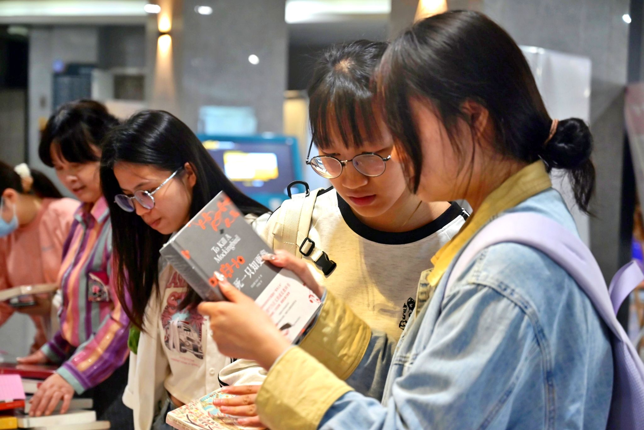 翻看借阅书籍 熊雄摄