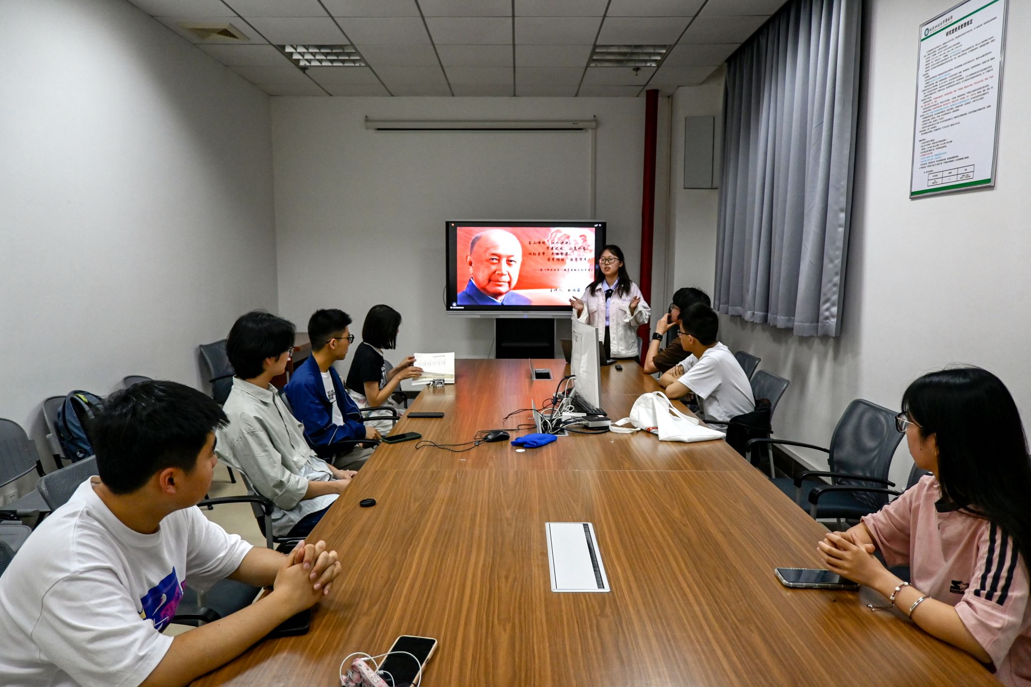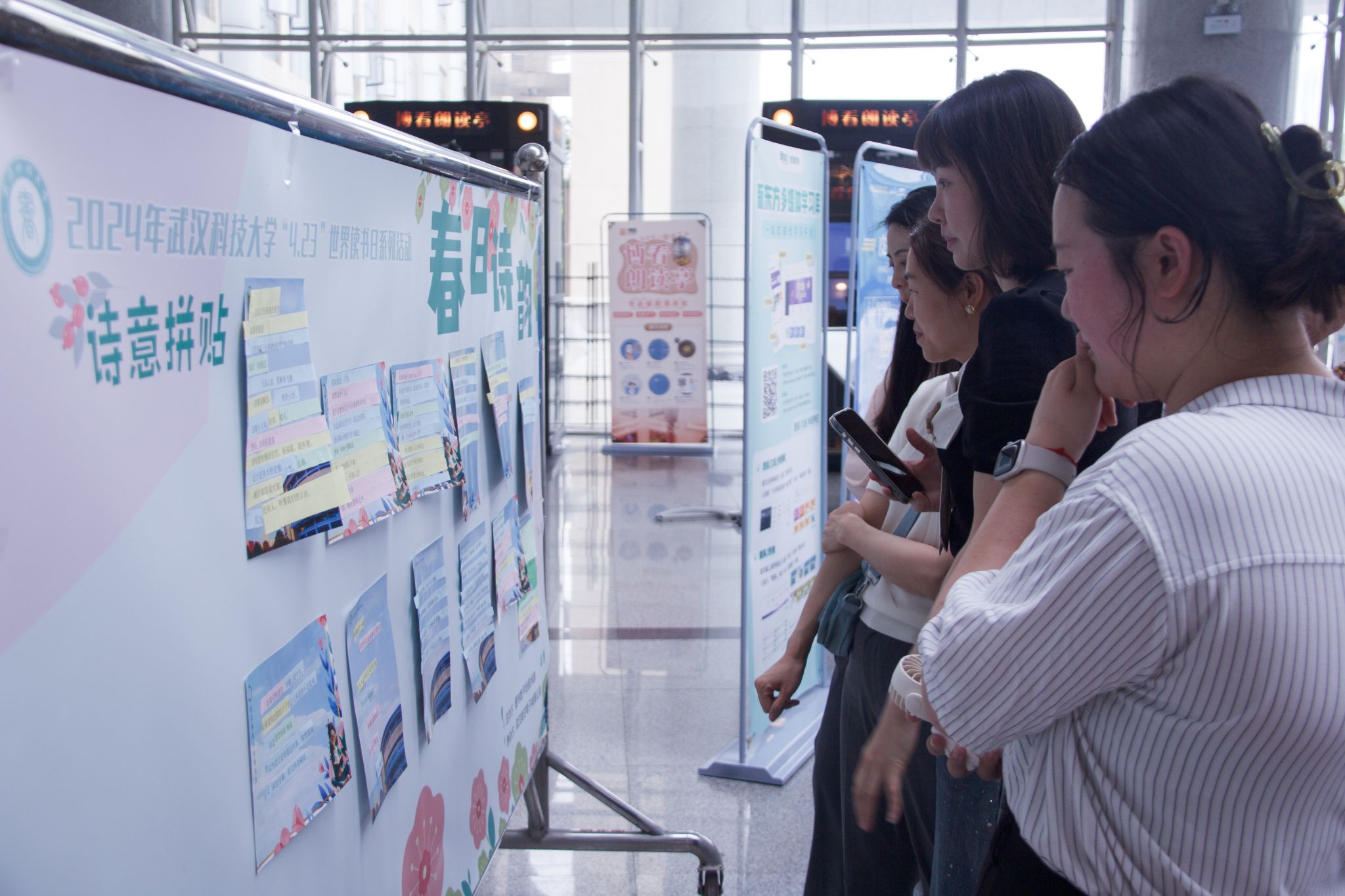师生观看“诗词拼贴”活动作品 万紫萍摄