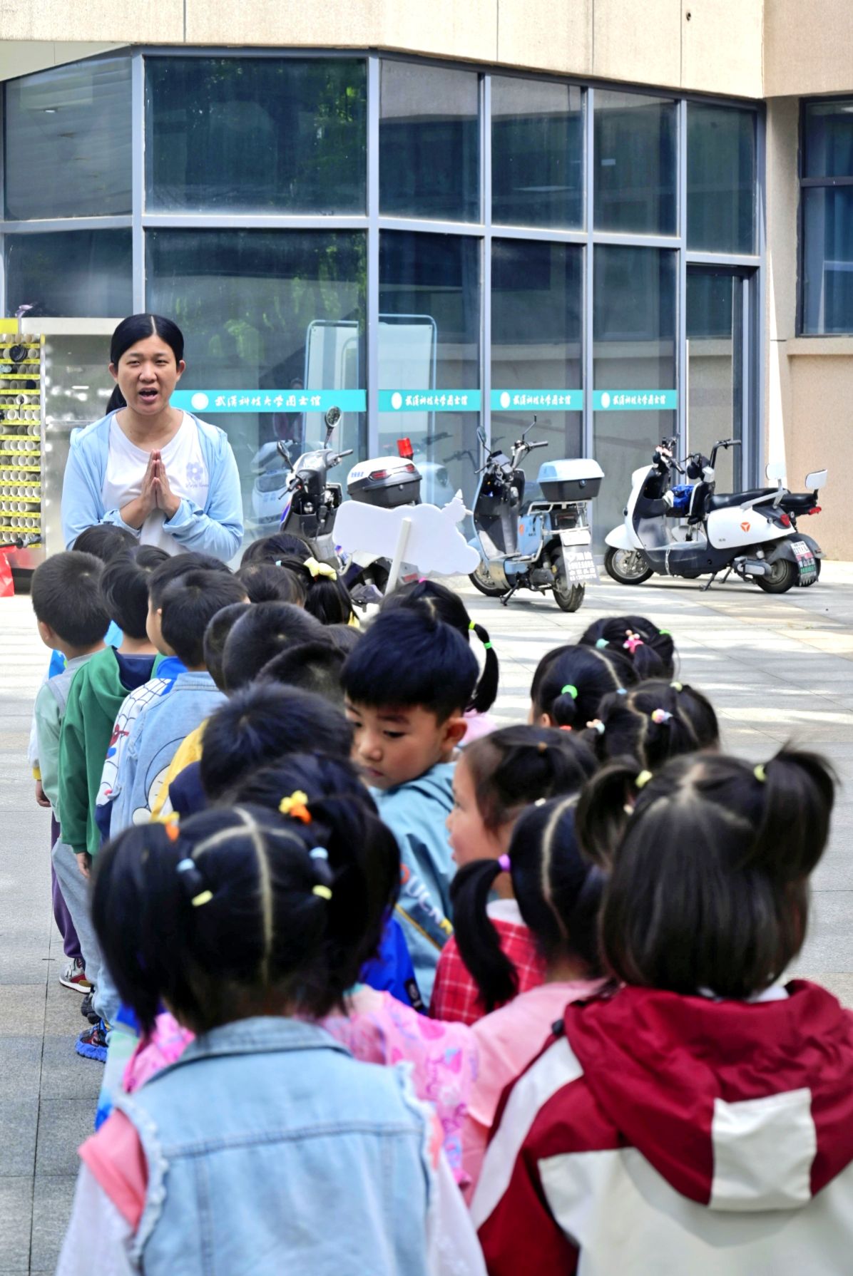 老师进行活动准备工作 万紫萍摄