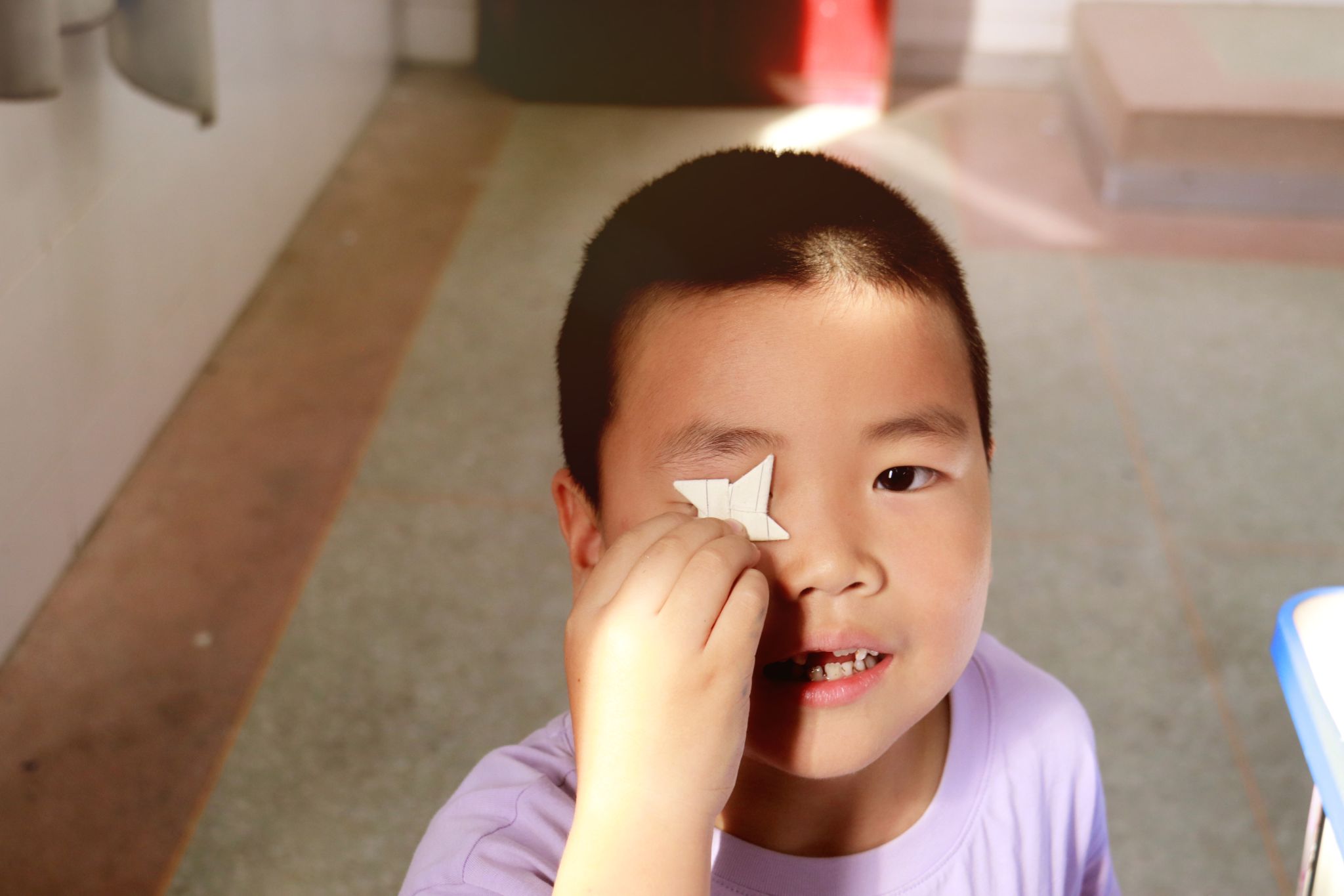 小朋友展示折的回型标 郭劼摄