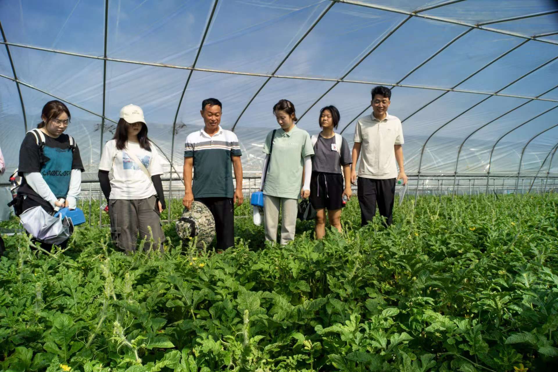 医学部实践队员参观瓜菜大棚 肖善明摄