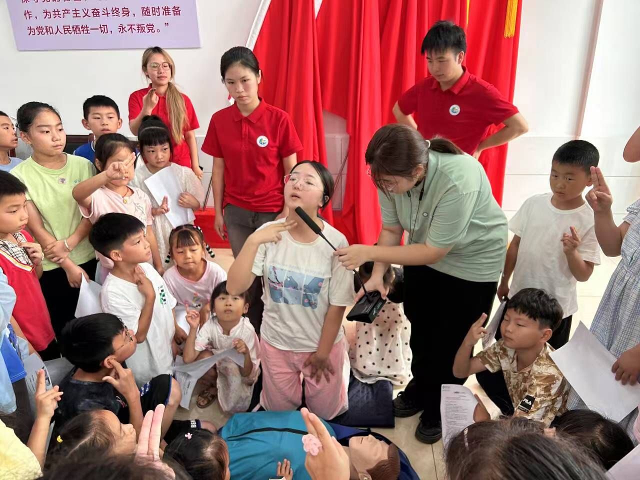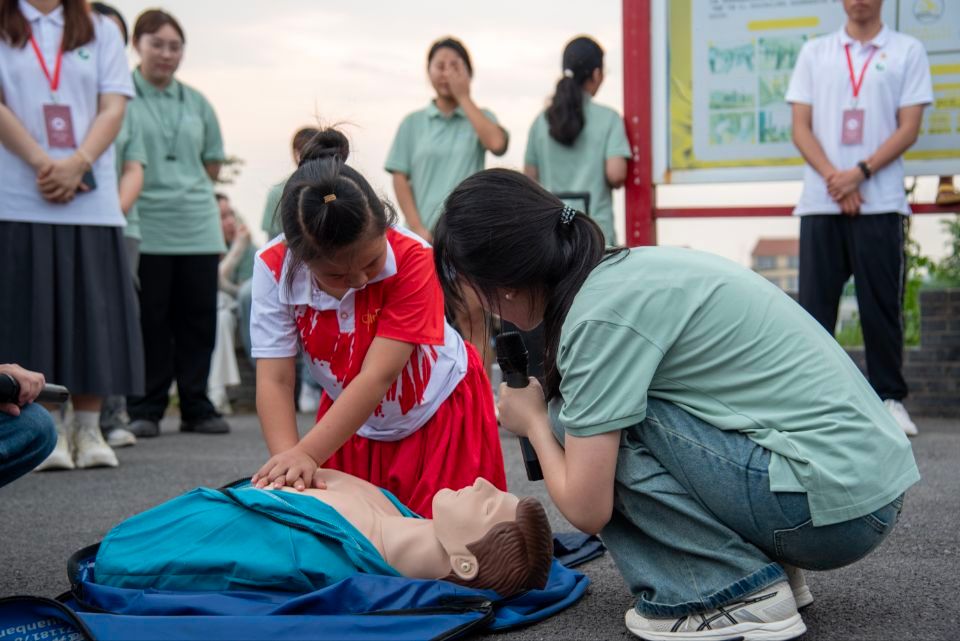 医学部实践队员教小朋友学习急救知识 肖善明摄