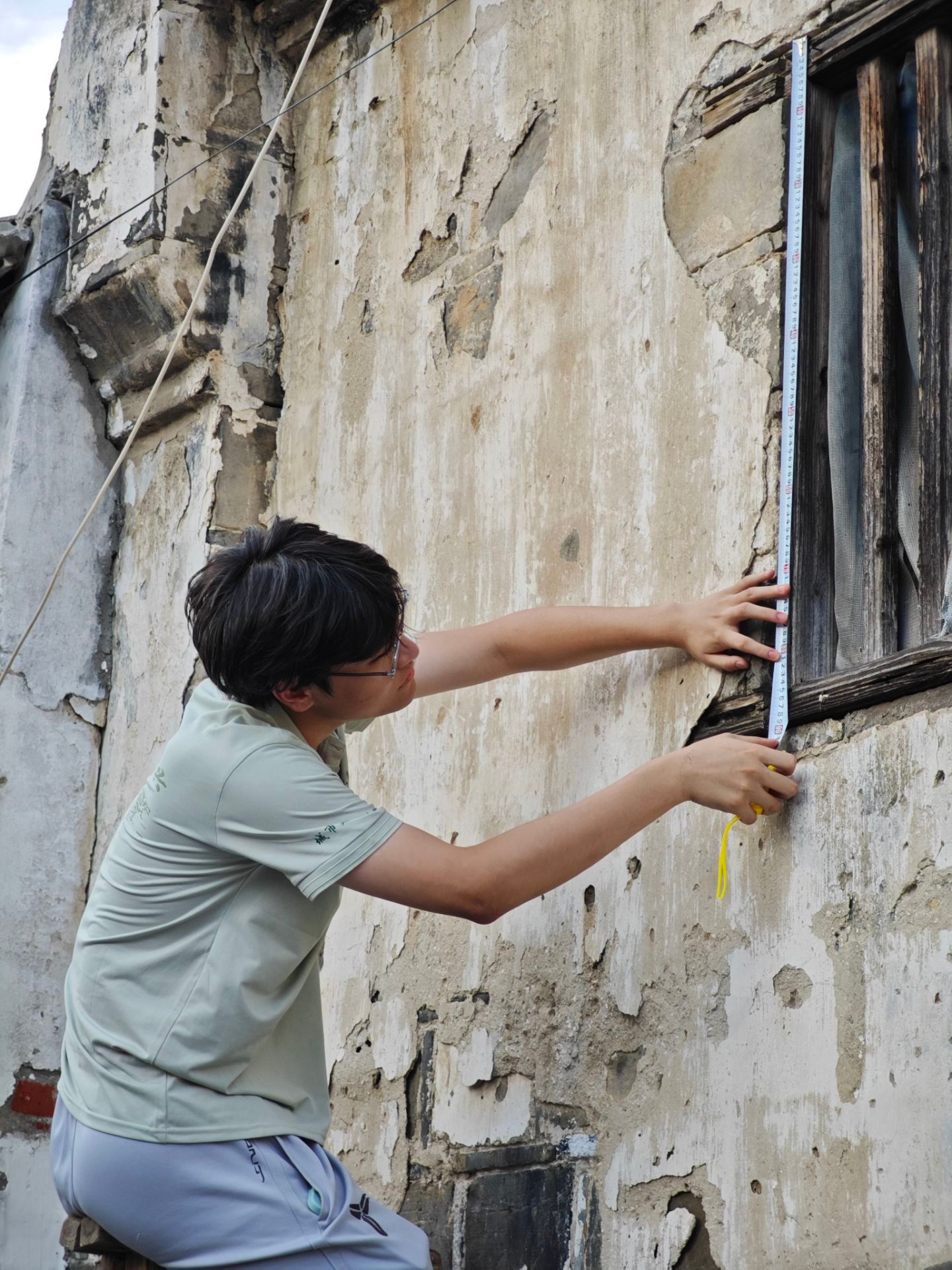 队员叶科正在对山墙进行测绘 刘力豪摄