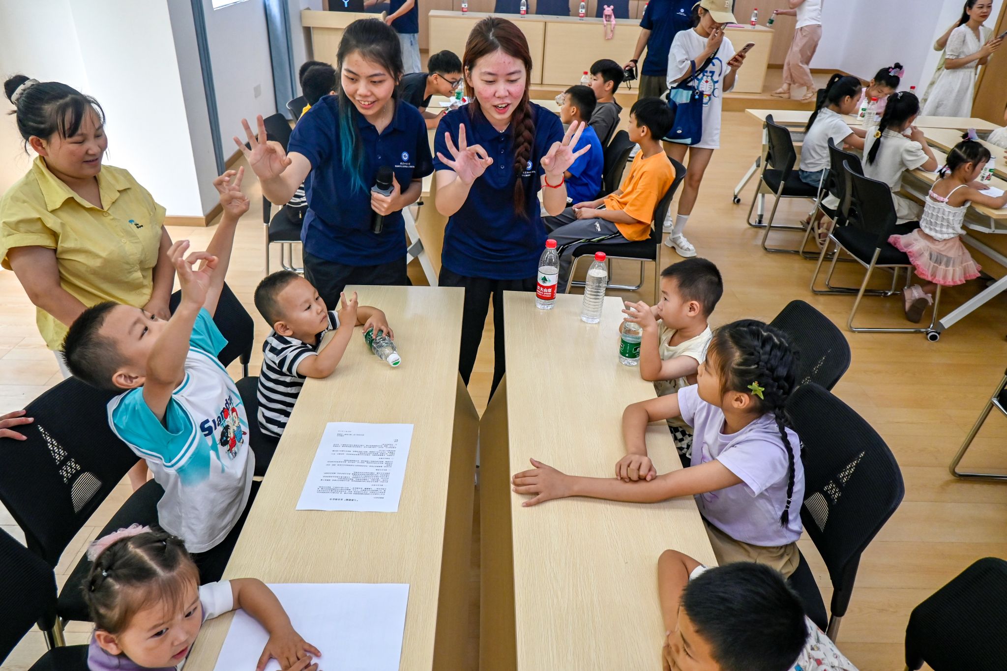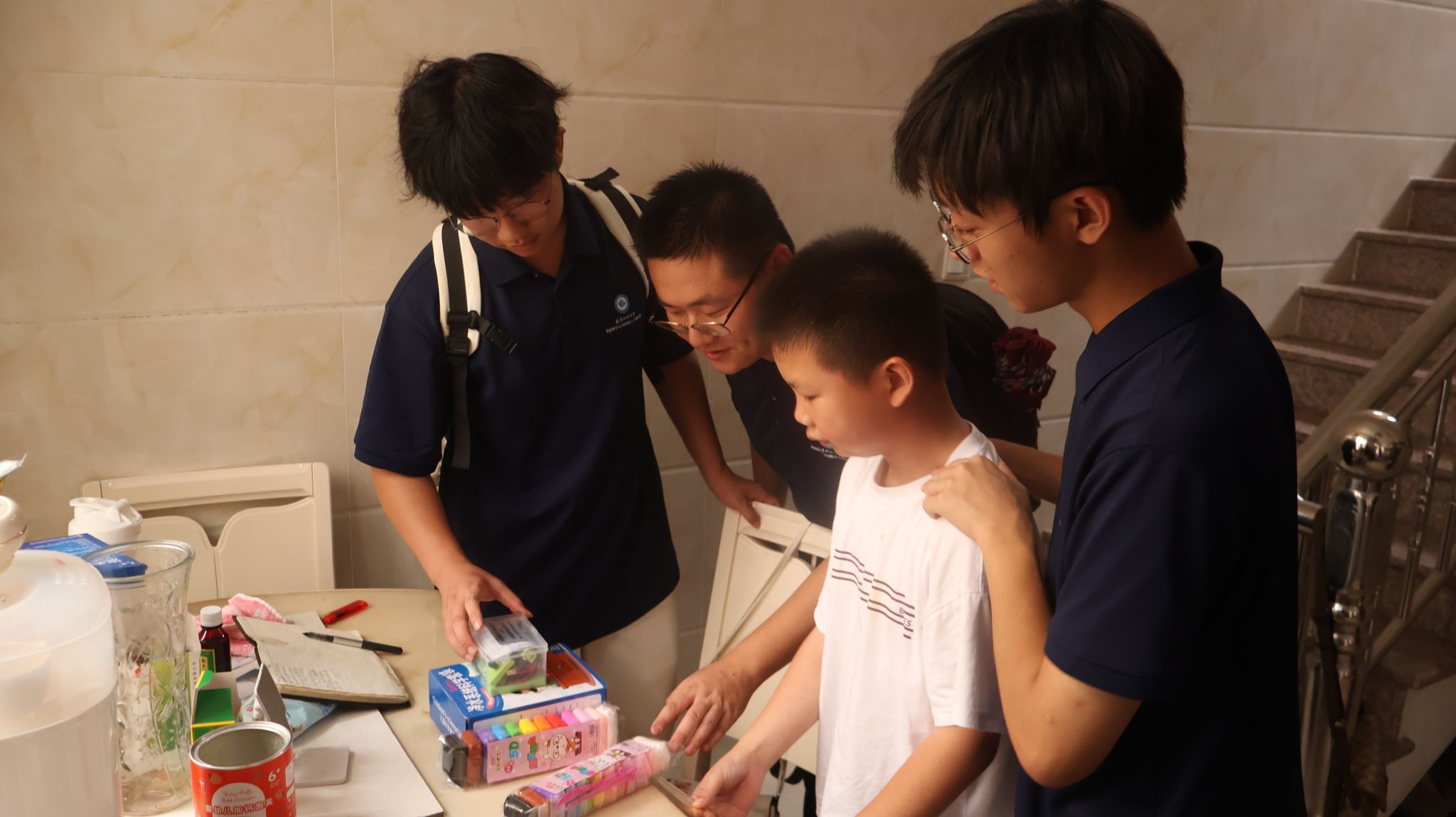 赵鹏社区宣讲活动后的游戏环节中团队成员帮小朋友安装扇子柄 蔡军摄