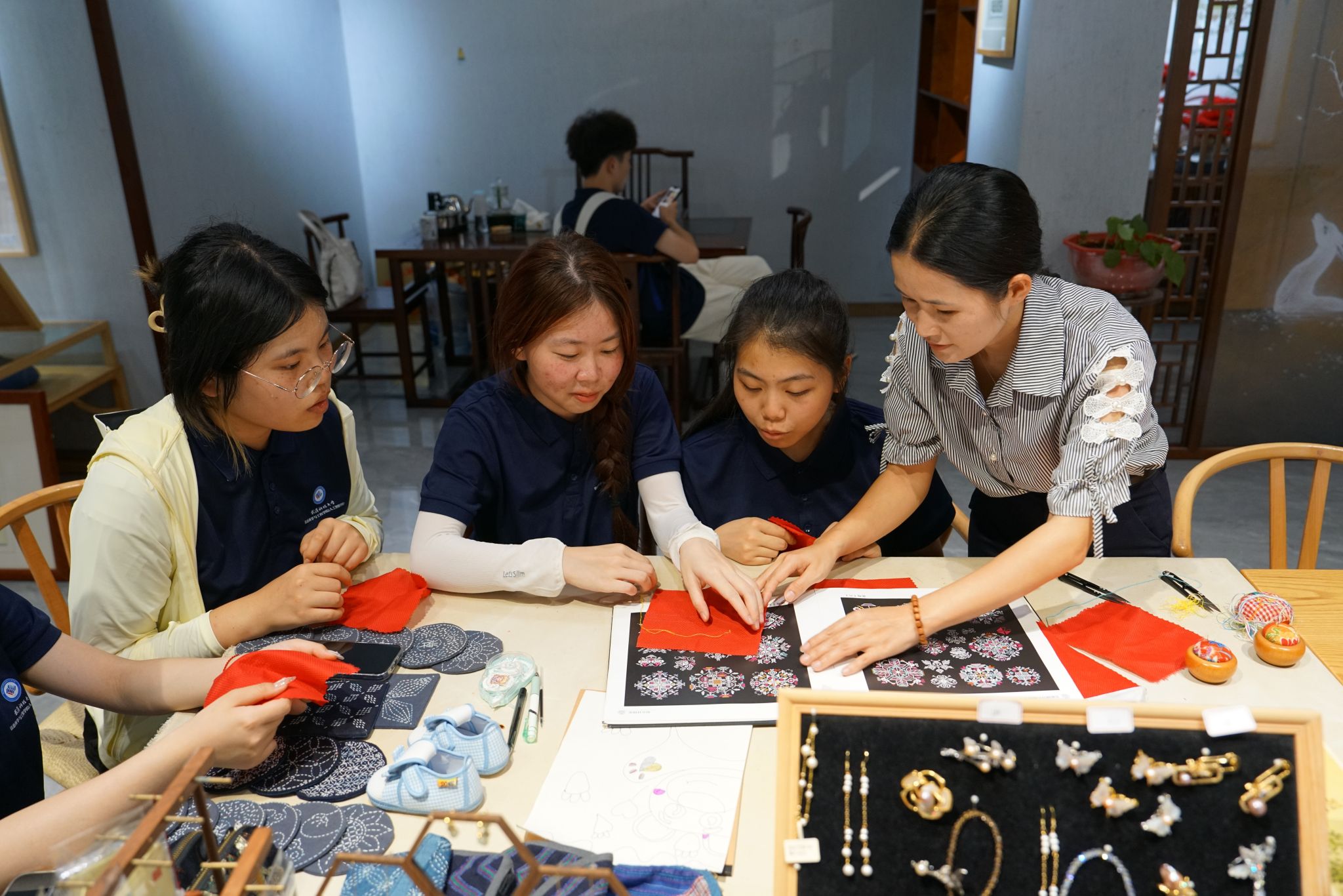 实践团成员学习黄梅挑花 赵婉涛摄