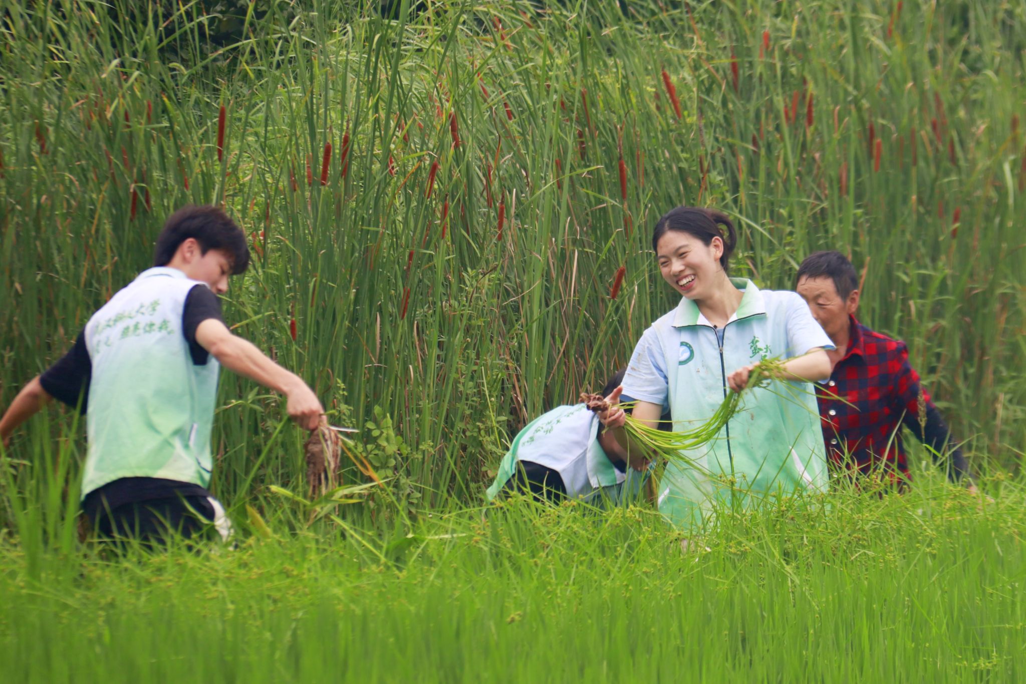 实践团队成员下田除草 郭劼摄