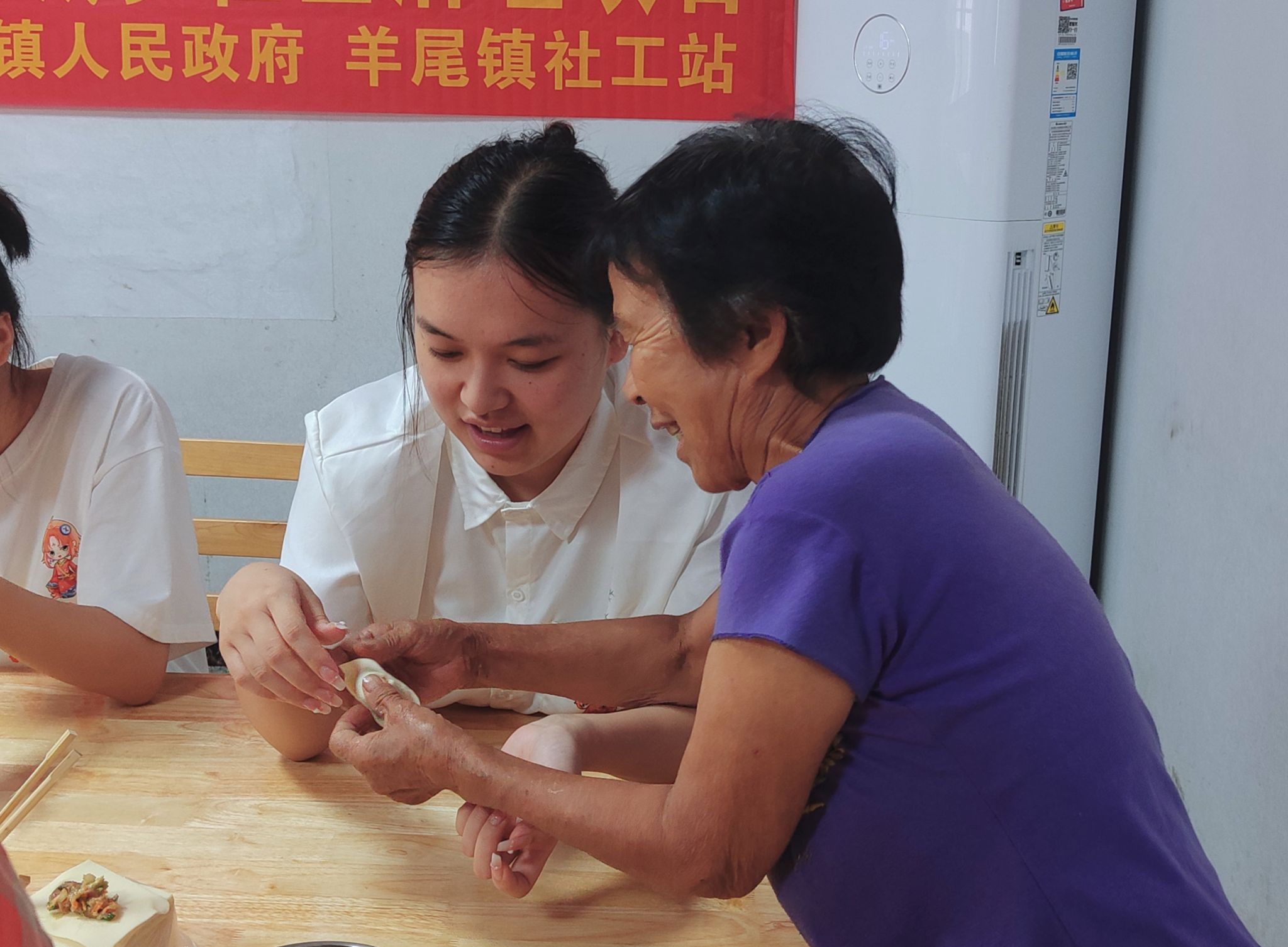 在社工活动中学习包饺子 付颖芳摄