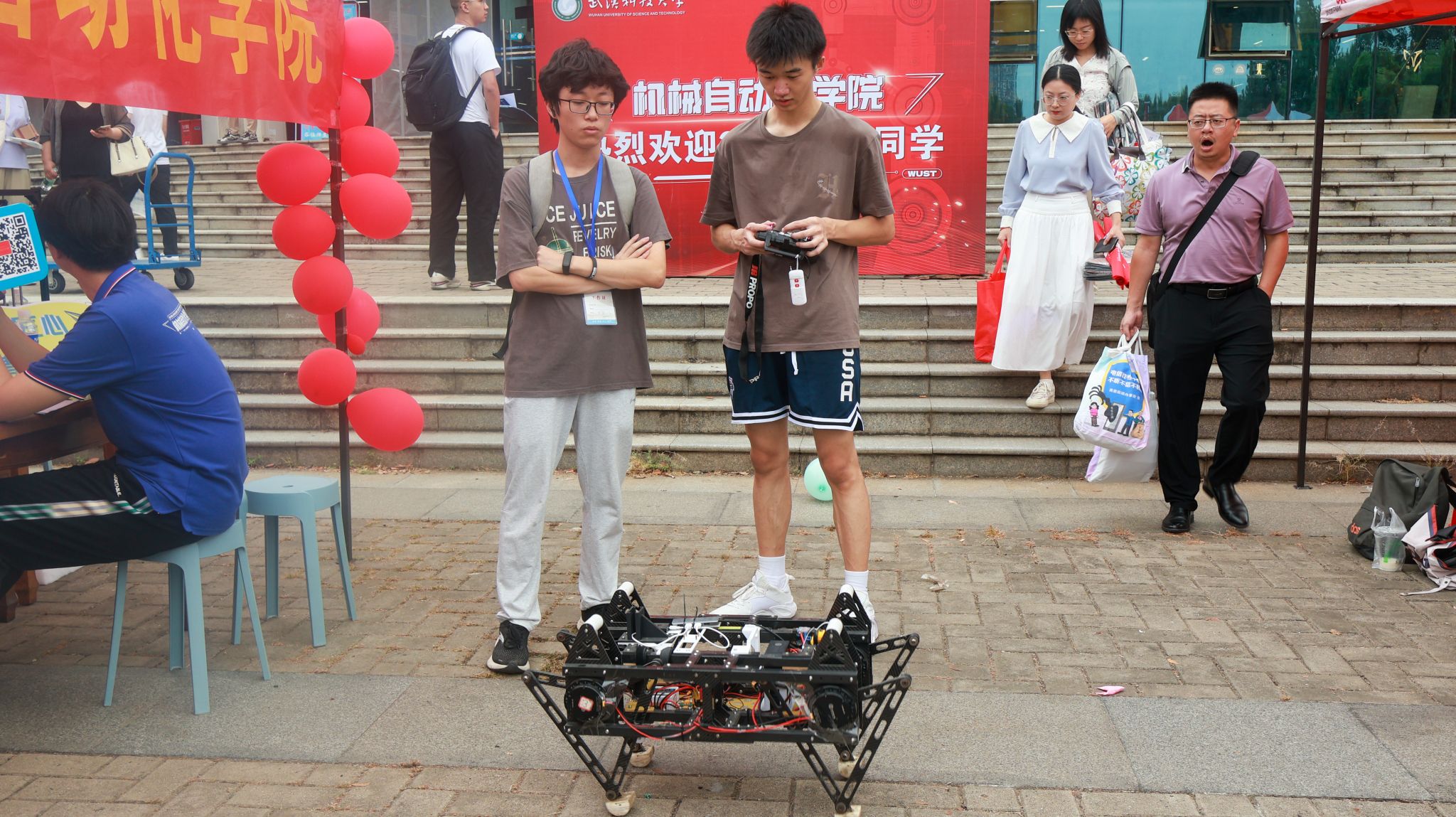 新生以及金属观看崇实步兵机器人 李周阳摄