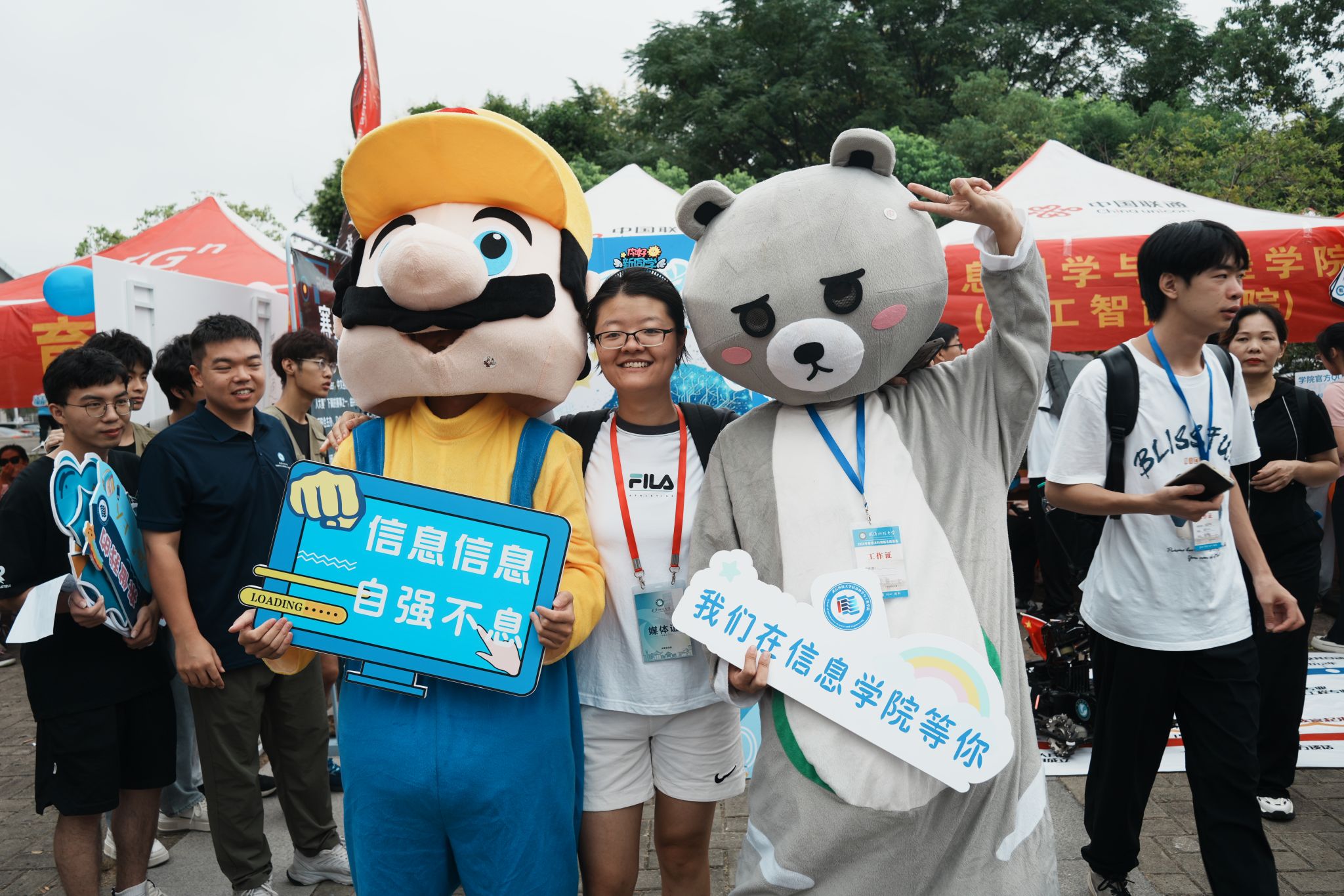 玩偶装志愿者合影 王淼摄