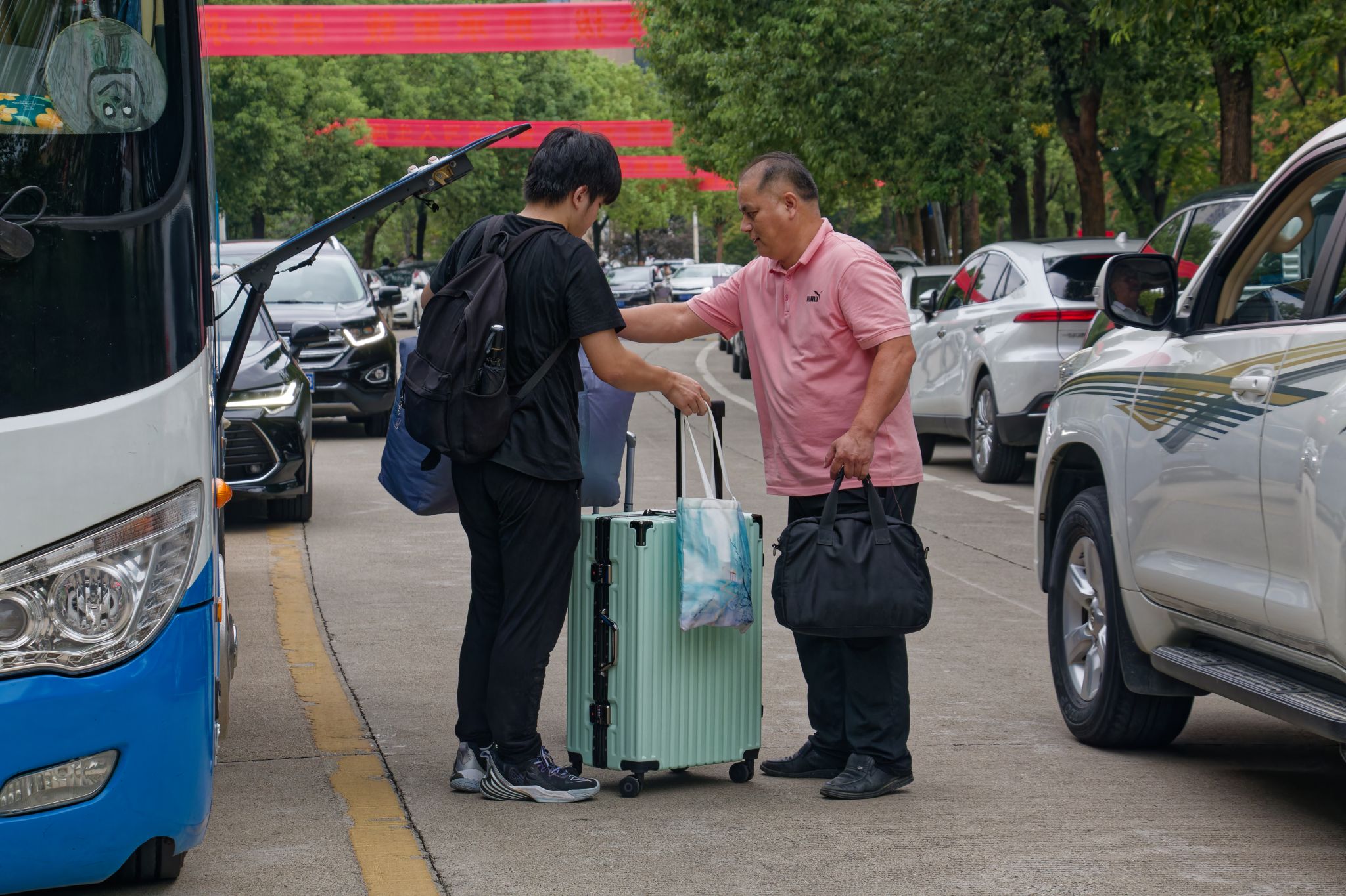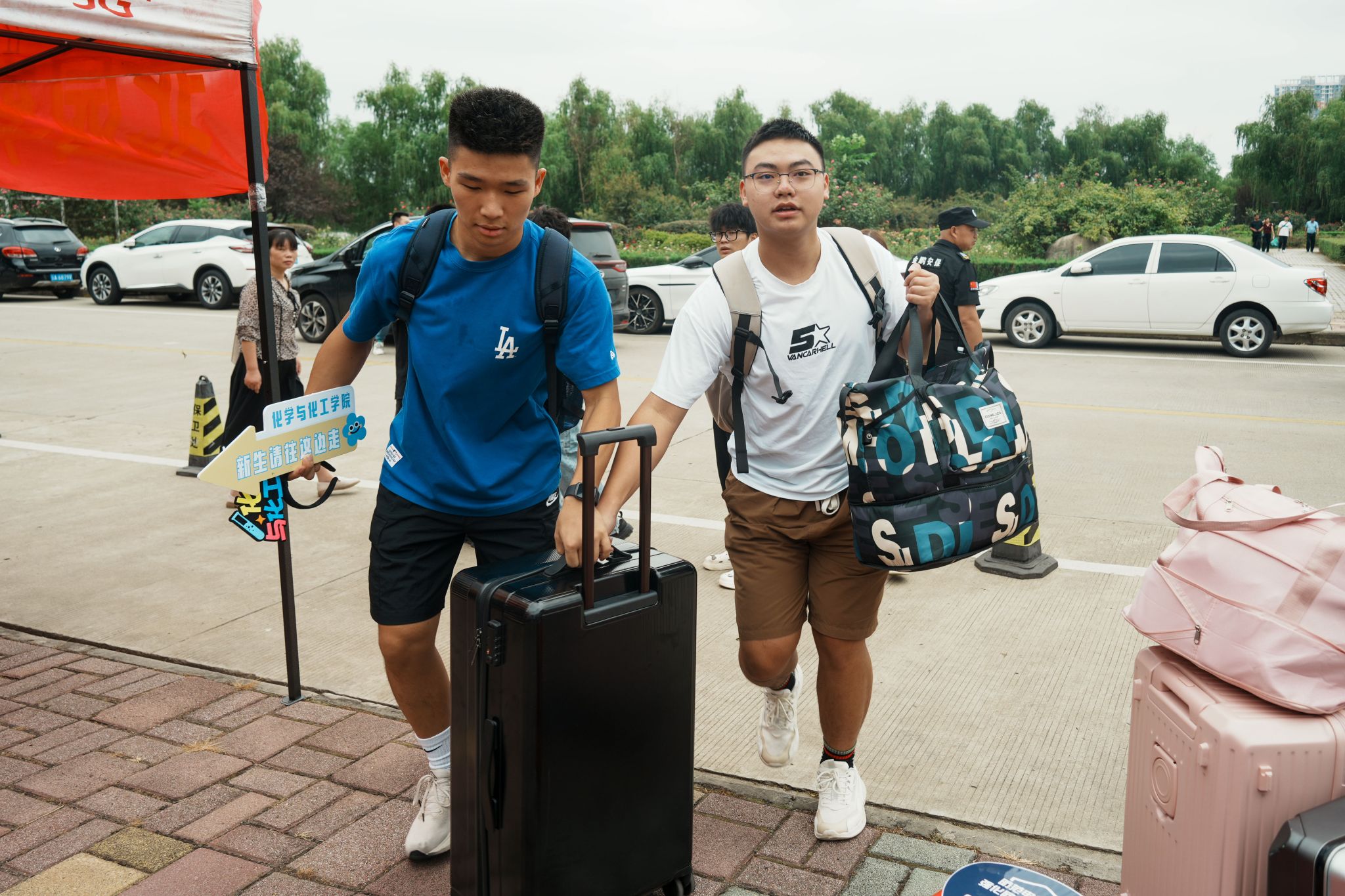 新生志愿者帮助新搬运行李 王淼摄
