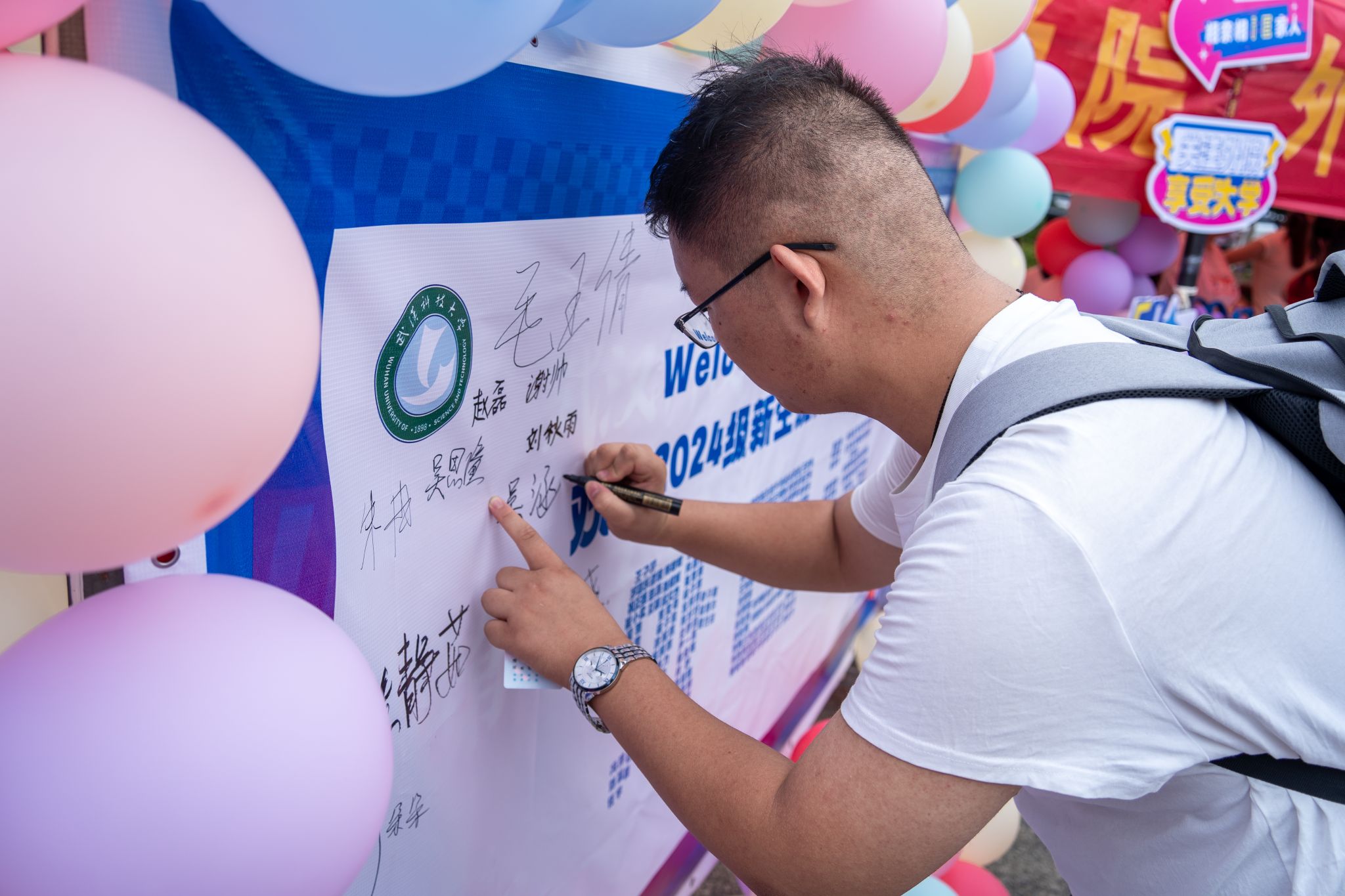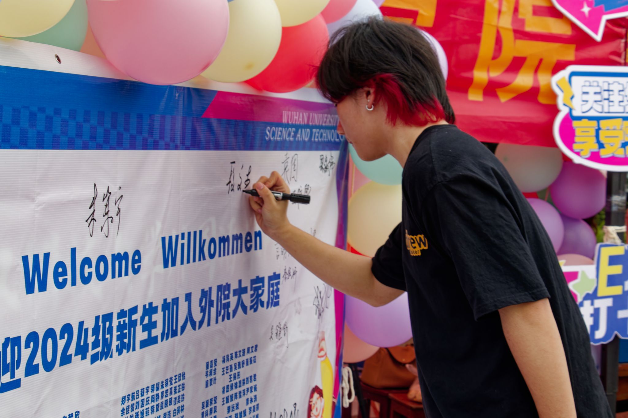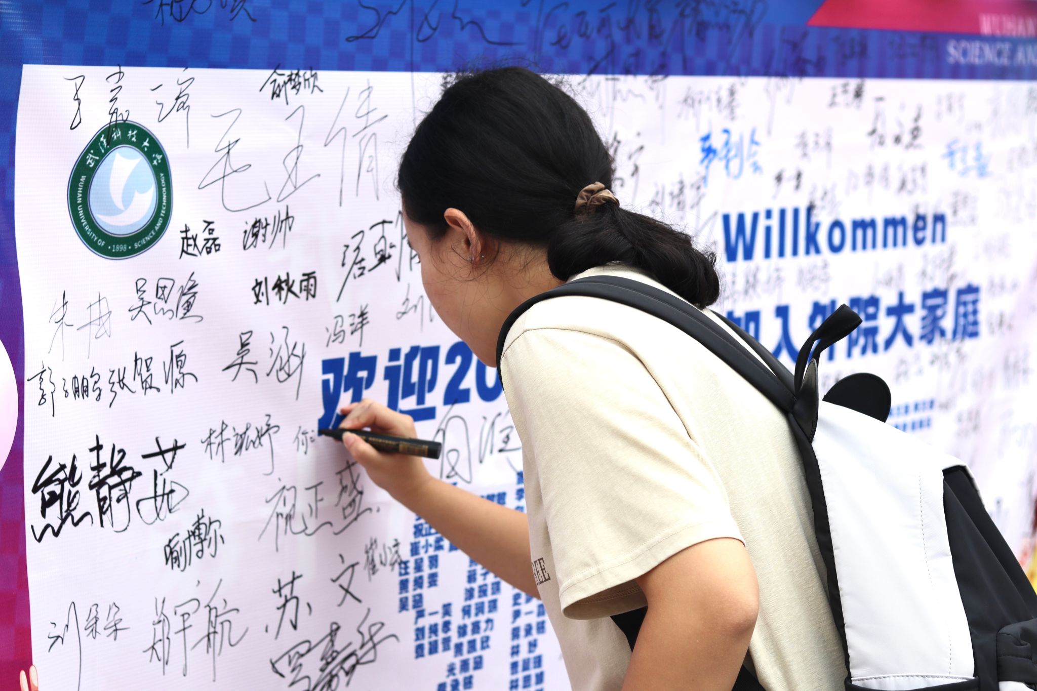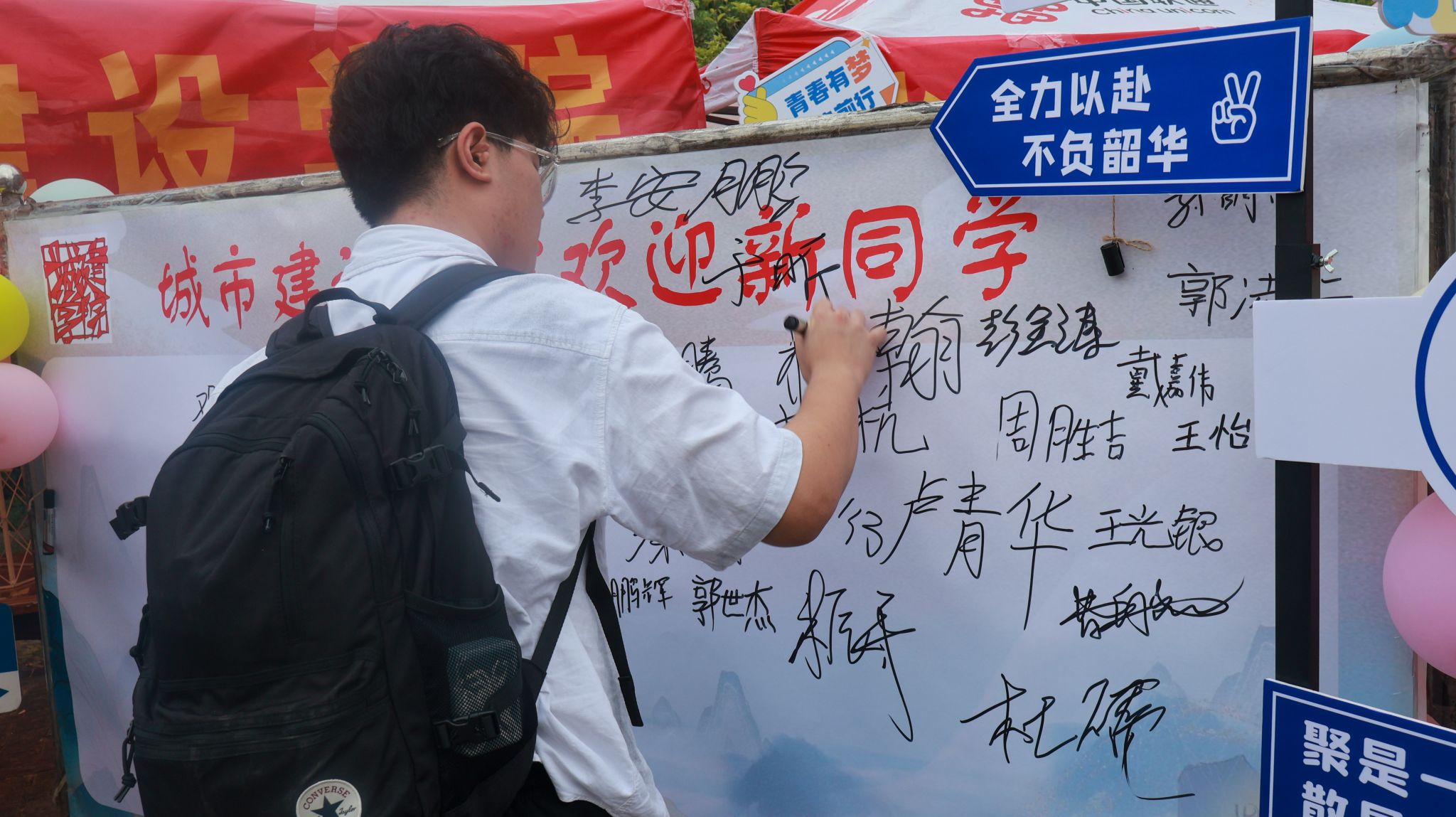 外国语学院新生在签名板上签名 孙正恒摄